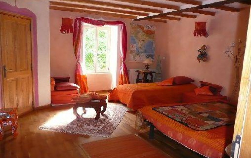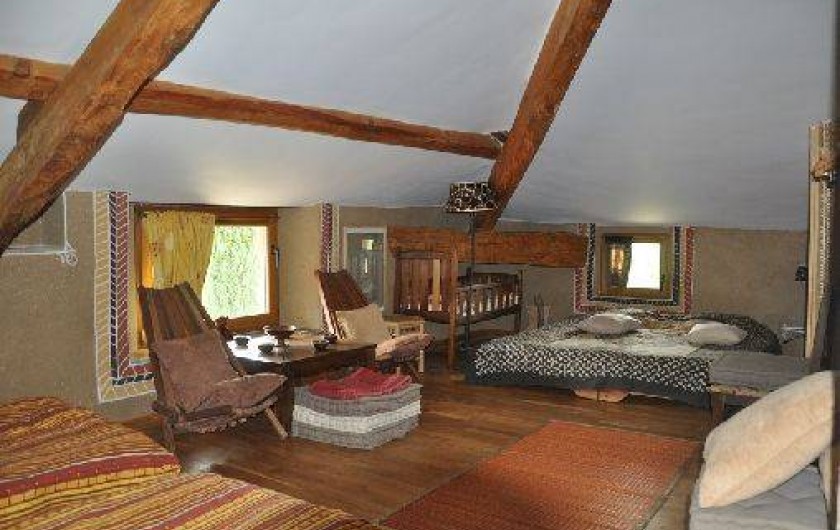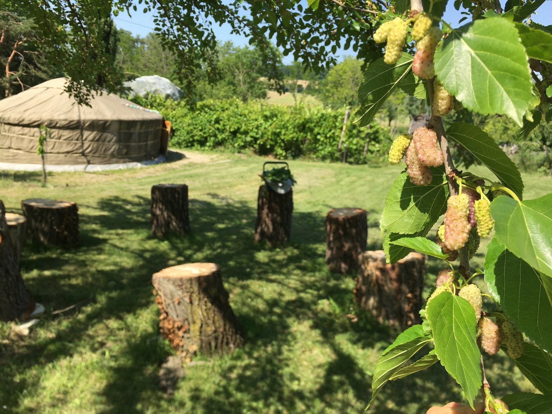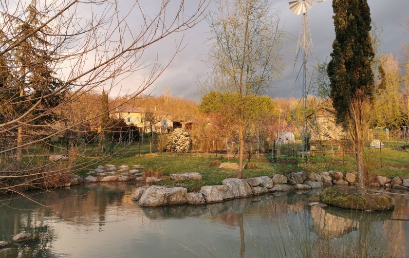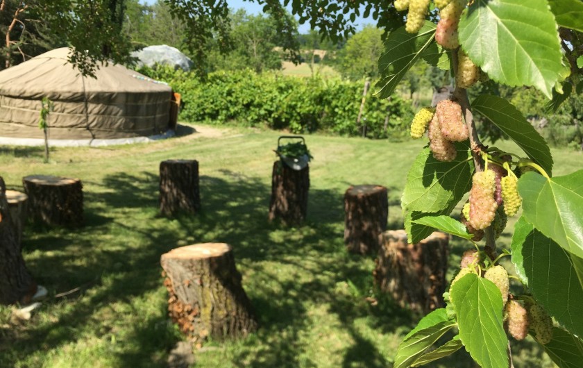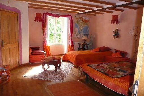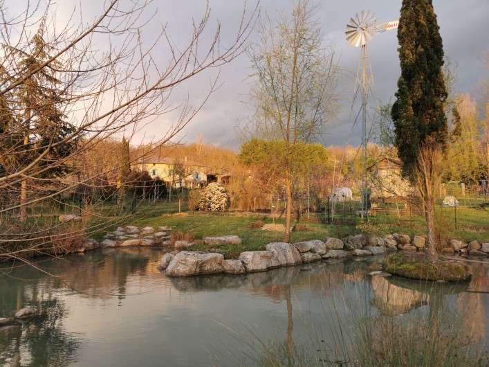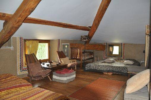 Dans un cadre superbe, vous trouverez des hébergements adaptés à vos besoins : des chambres d'hôte avec sanitaires personnels tout confort, une "yourte" mongole louée en chambre d'hôtes ainsi que d'autres options selon les situations. Sur le terrain, de nombreux espaces à vivre : un salon partagé, (possibilité de se faire une boisson mais pas de se faire à manger ), des terrasses à l'ombre, le ruisseau, les mares, les potagers biologiques,