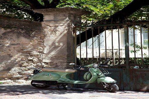 Vespa 125 cc scooters , une Citroën DS avec panier pique-nique , mise à disposition gratuite de bicyclettes.