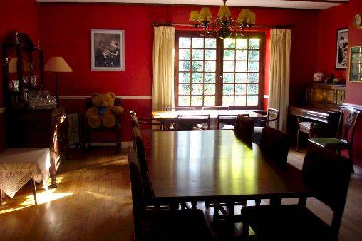 La salle à manger est un endroit idéal pour prendre le petit déjeuner ou le dîner. Le jeu de couleurs de murs rouge et œuvres d’art qui ornent les murs fournit une atmosphere unique pour dîner "en style". Cette pièce de notre chambres d’hotes est proche de la cuisine, où vos sens seront tinter la faim bien avant les repas étaient servis quand les arômes de la cuisine de Galya de remplissent rapidement la maison comme elle commence à cuisiner..