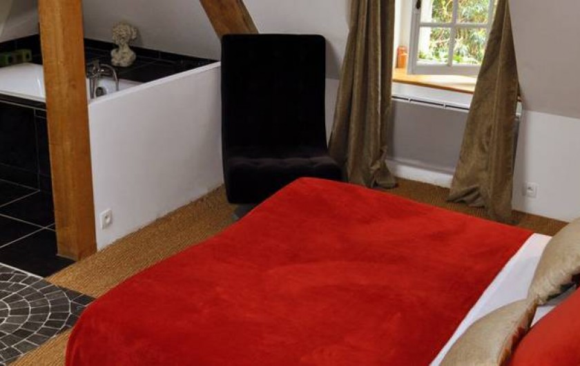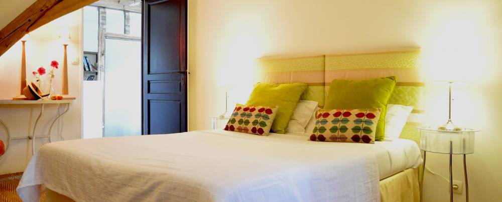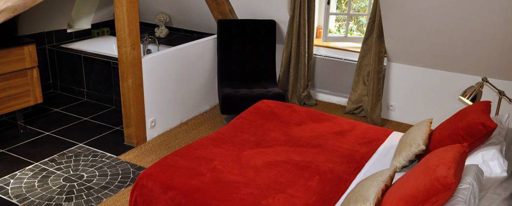 Au second étage La Chambre Tilleul , avec ses poutres apparentes vous enchantera par son coté chaleureux et intime.