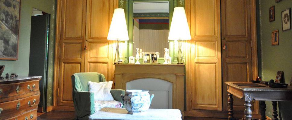 La chambre Verte, qui se décompose comme un petit appartement avec son entrée, sa chambre, son coin salon et sa salle de bains séparée, elle vous fera profiter de sa vue donnant sur la rivière et sur la terrasse ensoleillée.