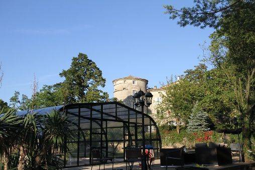 Entre Valence et Montélimar, à 10min de l'autoroute A7, le Chateau de Mauras, daté du 12ème siècle et construit sur une ancienne villa romaine, est situé sur un promontoire dominant la plaine de Chomérac (très joli village en partie fortifié, place ombragée, fontaine, tous commerces). Nous vous proposons deux très belles chambres spacieuses, très confortables et luxueuses, aménagées avec des meubles anciens, salle de bains en marbre avec bains balnéo. Piscine couverte de grande dimension aménagée dans le parc du chateau. Petits déjeuners pris sur la terrasse ou dans la grande … salle amphitrion. Salon TV et bibliothèque à disposition. Lire moins Lire la suite