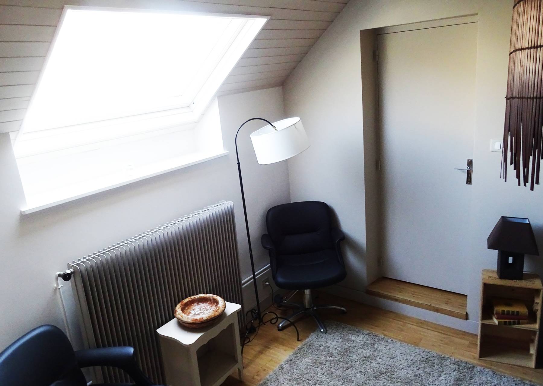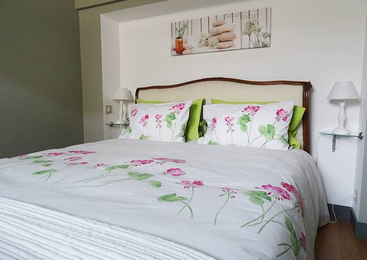 Grande chambre avec salle de bain individuelle au rez de chaussée.