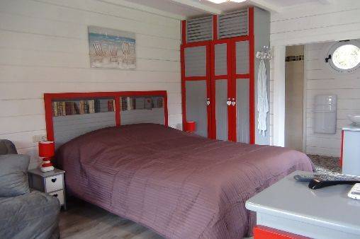 D'un concept innovant, insolite, écologique, cabane sur pilotis entièrement en bois, composée d'une grande pièce avec un grand lit 160/200, d'un bz 140/190, d'une petite kitchenette toute équipée, d'une salle d'eau avec douche italienne et d'un wc