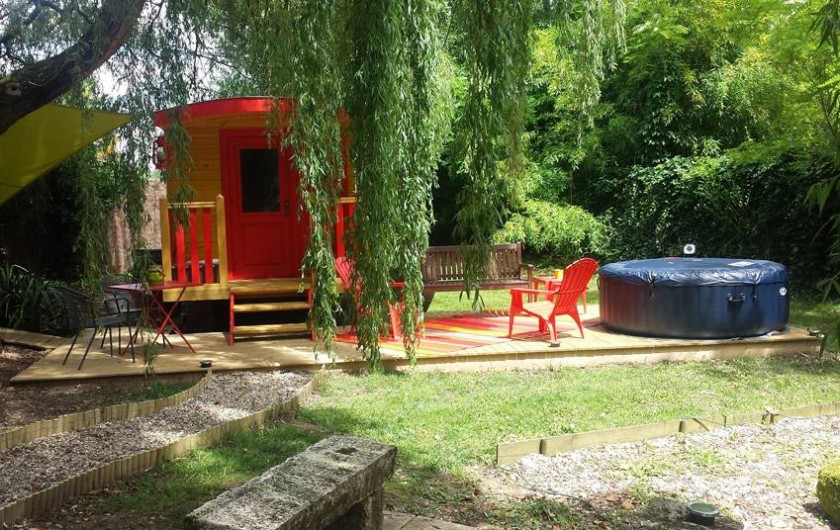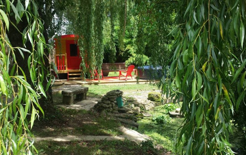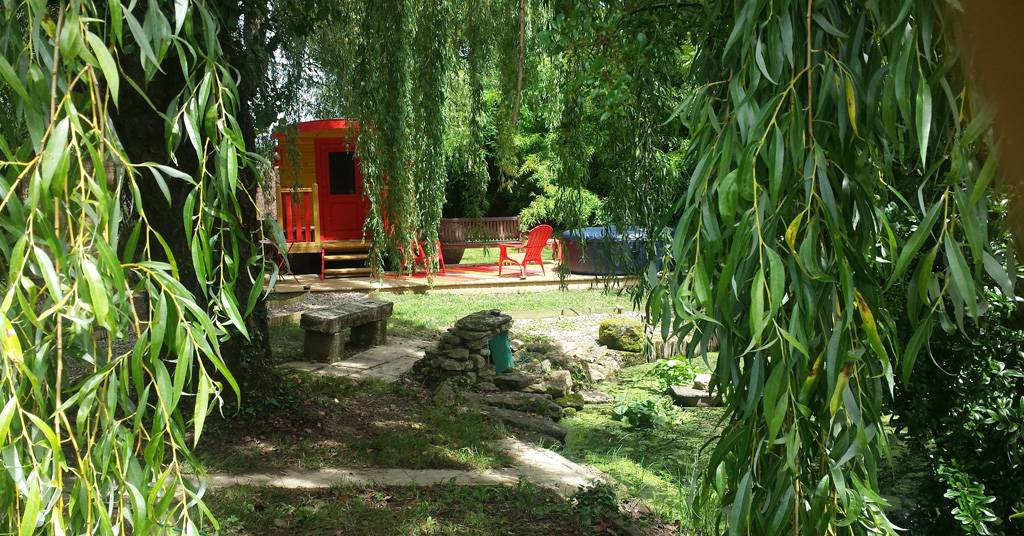 Nichée sous un saule pleureur aux bords d’un petit étang, la roulotte de Mara, aux couleurs chatoyantes, d’inspiration tzigane, tout droit venue d’Ukraine, vous invite à un séjour insolite et paisible à l’abri des regards indiscrets.