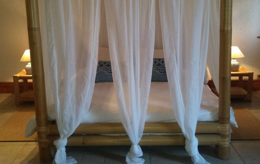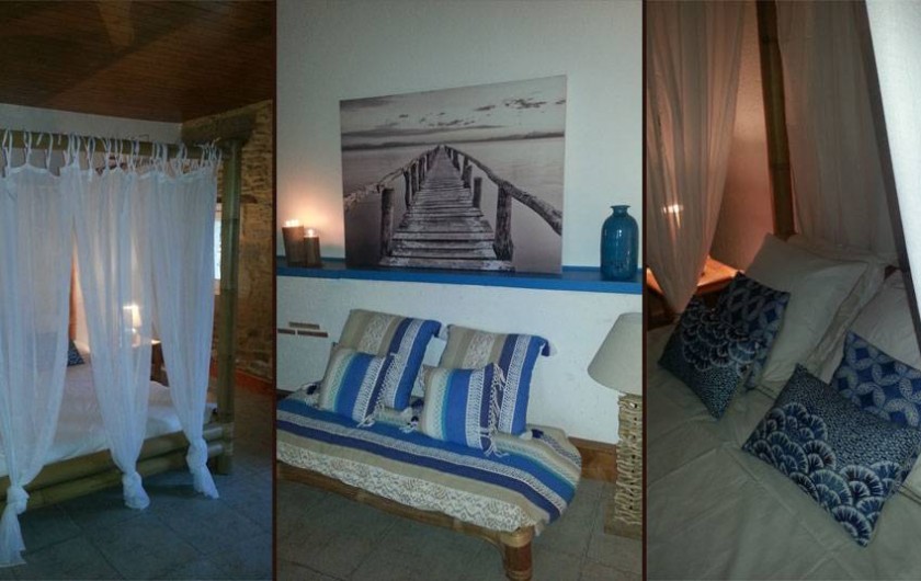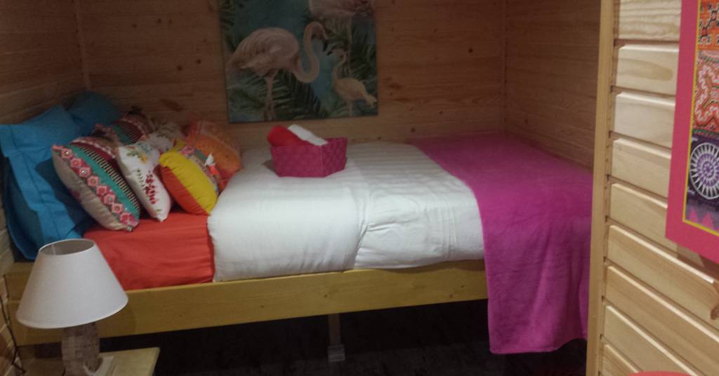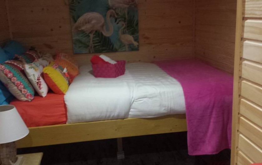 Une mezzanine surplombe la chambre avec un couchage pour 2 adultes ou 2 enfants.