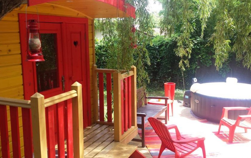 Venez vivre les sensations uniques d’une douche « tropicale » chaude sous un saule pleureur … et d’un jacuzzi privatif au milieu d’un écrin de verdure »