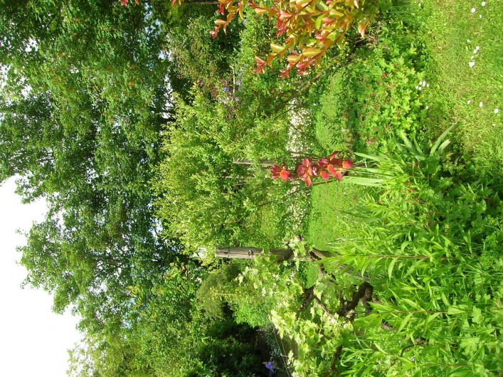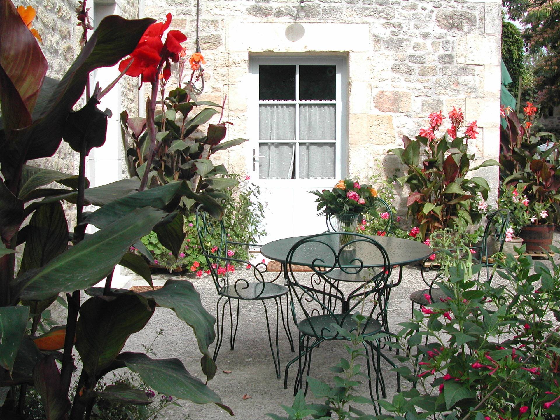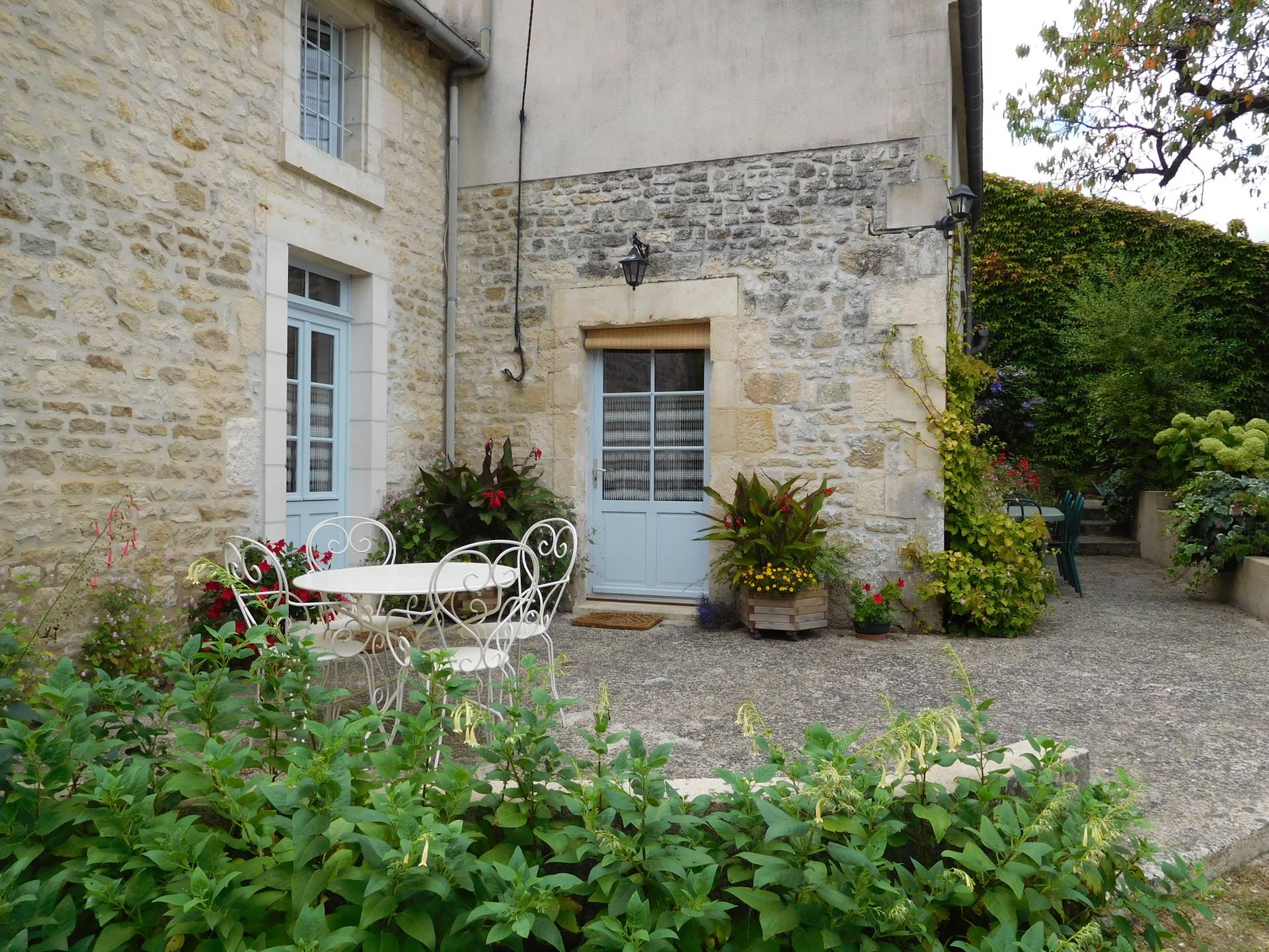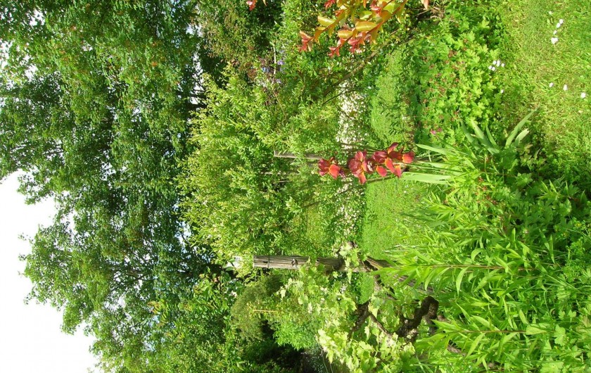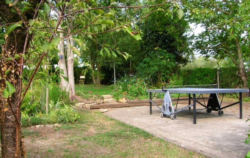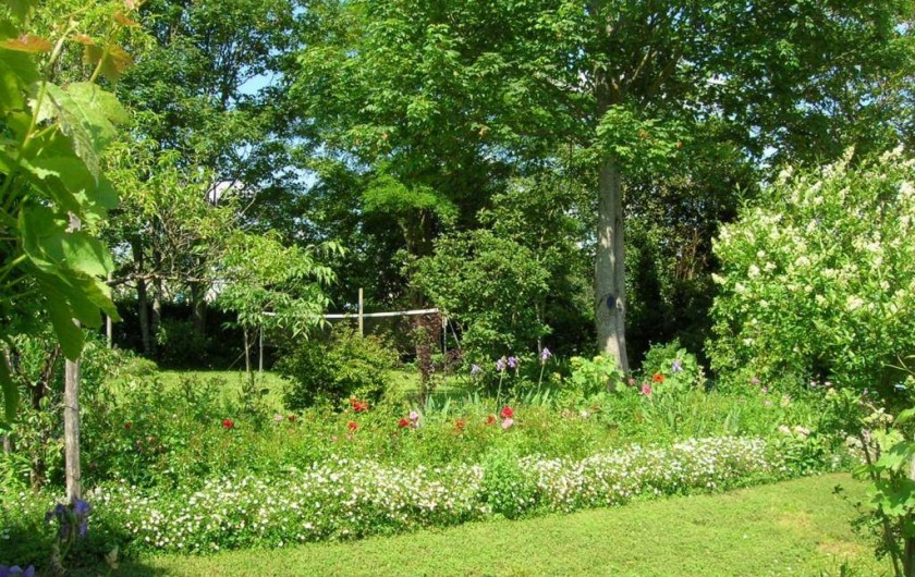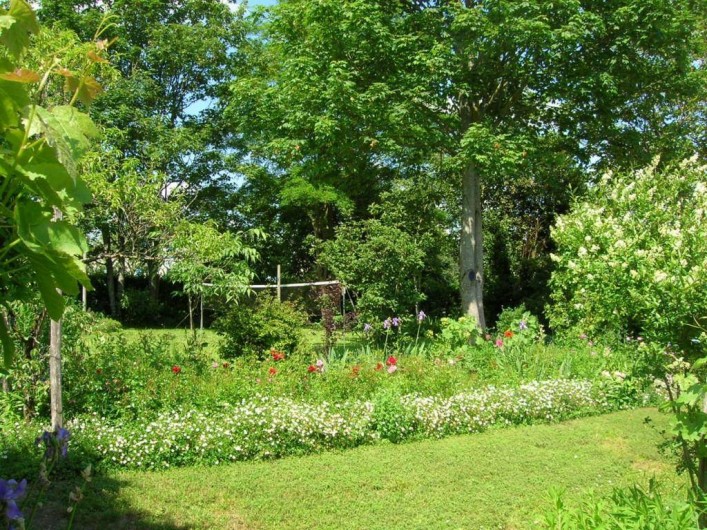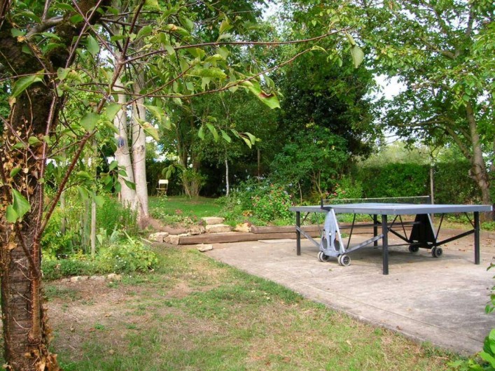 Vous avez accès aux espaces communs de la propriété : une cour avec un emplacement privatif et un grand jardin ombragé et fleuri en commun avec un gite de 5 personnes.