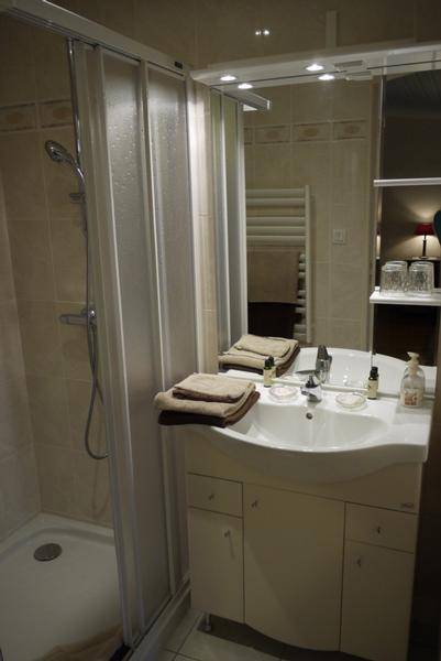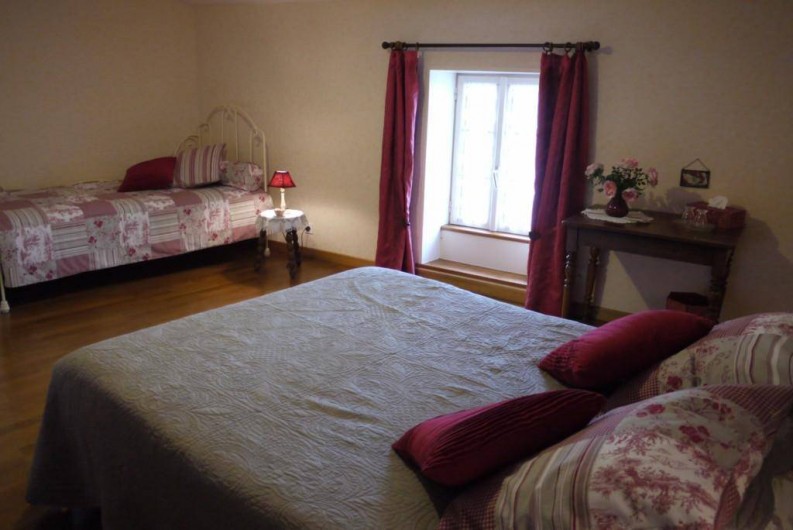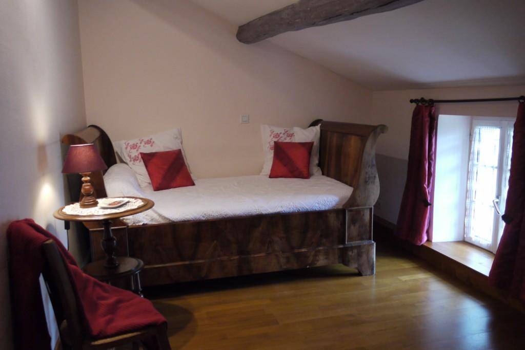 Les deux chambres d’hôtes sont à l’étage et sont communicantes : une chambre avec 1 lit 2 personnes en 140 + 1 lit 1 personne en 90, une chambre avec 1 lit «bateau» de 108x187. Les deux ont accès à la salle d’eau et WC sur le même étage.