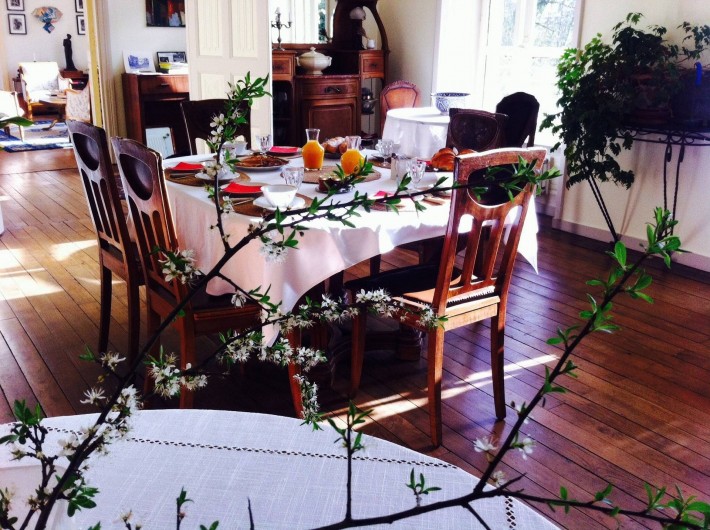 L’atterrissage en douceur après vos rêves de la nuit continue par un petit-déjeuner royal et sain : thé, café, chocolat chaud à votre choix ; fruits de saison, yaourts locaux, confiture « maison », baguette croustillante et croissants au beurre…Un œuf à la coque ? Peut-être une omelette ? Pour finir en beauté : gâteau breton ! Tout cela servi au jardin où l’on sent les roses et l’odeur de la pelouse fraîchement coupée…L’air est plein de rumeurs : discussion des oiseaux, légère brise dans les arbres, rires des hôtes… Pas d’esbroufe…Que des vraies choses.