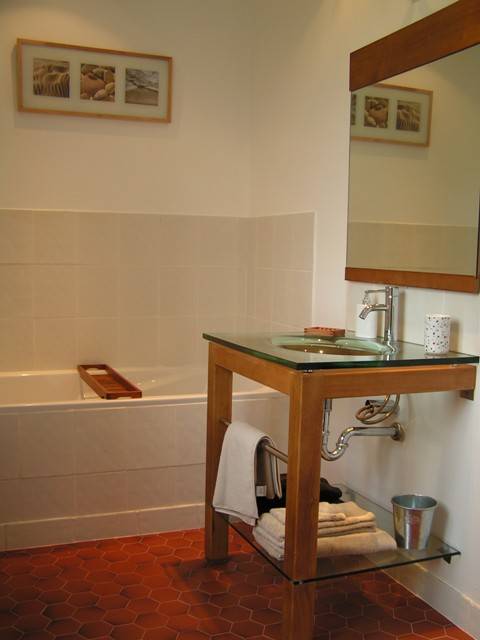 La chambre la plus spacieuse dans des tons beige et ficelle où vous pourrez vous relaxer dans une salle de bain très confortable avec douche et baignoire. Elle dispose d'une très belle terrasse individuelle orientée plein sud où vous pourrez prendre vos petits déjeuners sous le soleil.