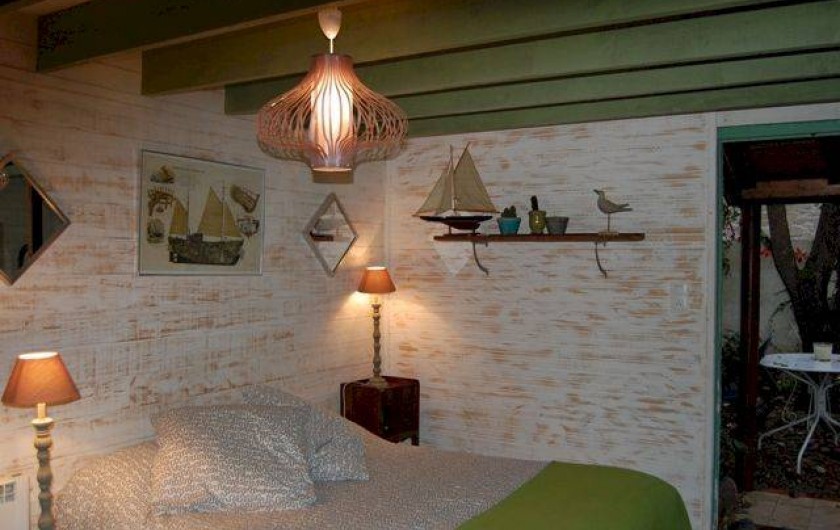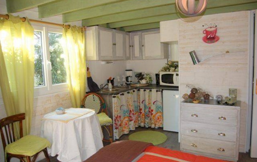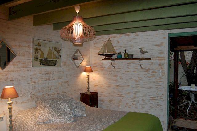 Ce cabanon se situe en fond de cour au calme. Vous apprécierez votre indépendance grâce à son petit coin cuisine et son coin repas et son barbecue sous le pommier. Biensur, il dispose de sa propre douche ainsi que d'un WC.