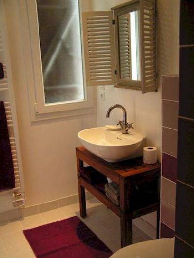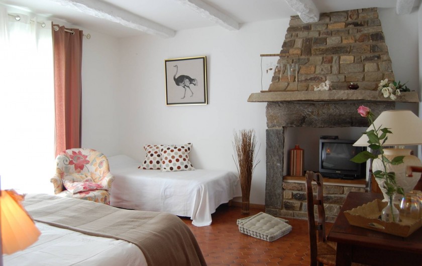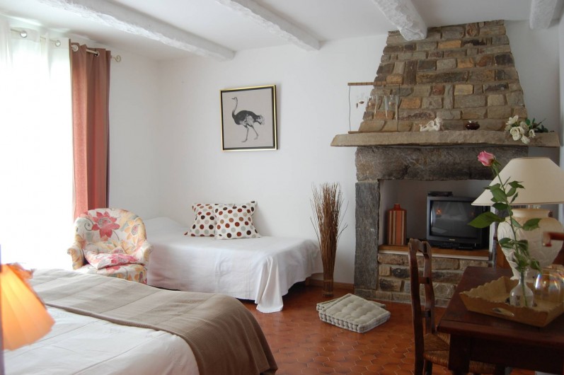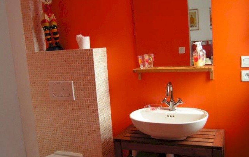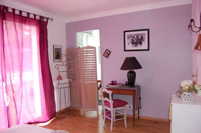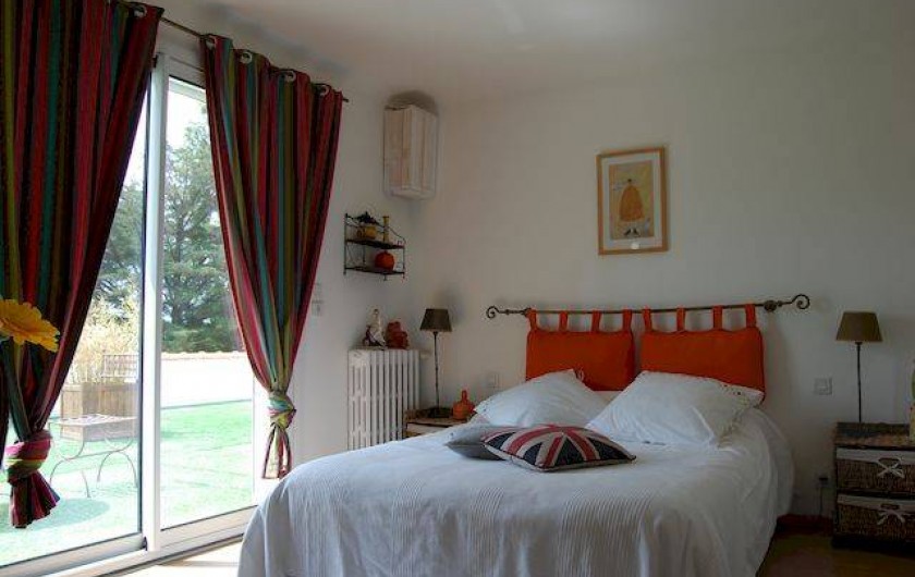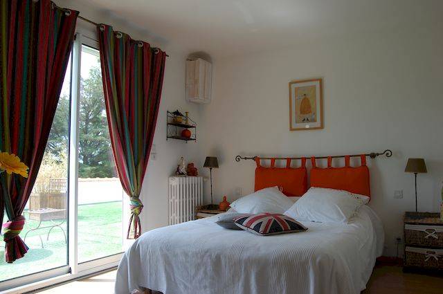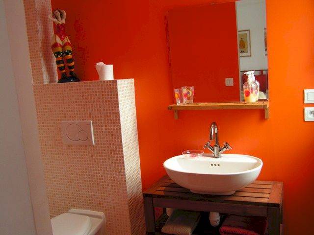 Une seconde très belle chambre aux couleurs chaudes avec salle de douche agréable. Elle dispose également d'une terrasse au soleil.