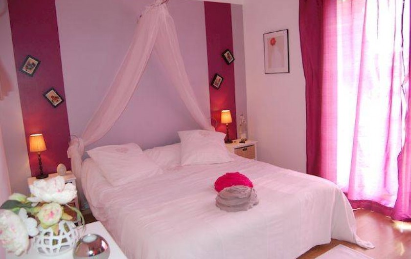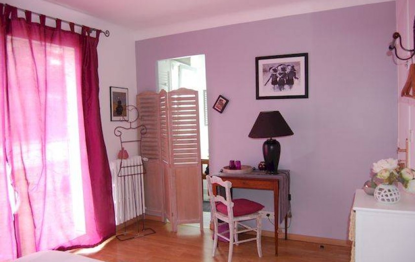 Une joli chambre dans des tons gris perlé et prune avec terrasse individuelle.