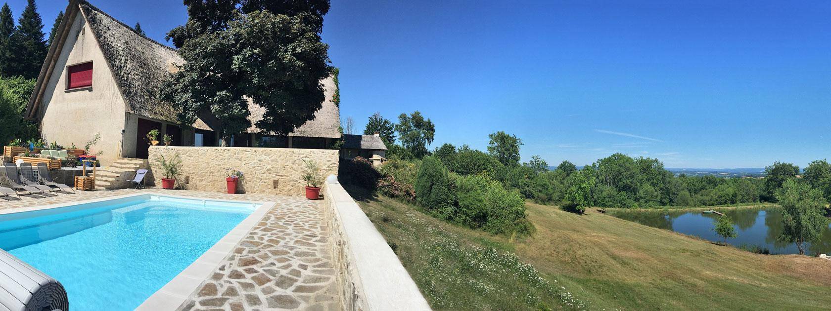 Adossée à un vallon qui découvre un étang de pêche privé et un beau panorama sur la cité médiévale de Saint Léonard de Noblat, la maison contemporaine aux allures de chaumière offre confort et quiétude. Juliana et Jean-Pierre, maraichers, vous régaleront de produits frais à la table d'hôtes. Piscine chauffée de mi mai à fin septembre, bain nordique (en option et sur réservation : 30 euros/chambre), terrain de tennis privé, étang de pêche, balades sur la propriété et dans les environs.