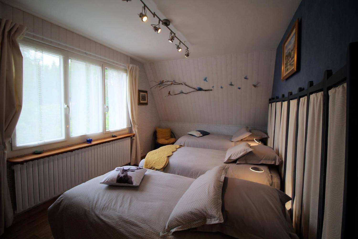 privés, 1 chambre pour 3 personnes avec sanitaires privés et coin salon avec cheminée et 1 suite de 2 chambres peut recevoir jusqu'à 5 personnes (1 lit 160 et 3 lits 90 dont 2 jumelables) avec petit salon privé, salle de bains (douche et baignoire) et wc. Au rez-de-chaussée, vaste salle de séjour avec salon, cheminée et larges baies qui ouvrent sur la terrasse. Chauffage central. Sur demande équipement bébé. Bienvenue aux chevaux : enclos, foin, eau et abri.