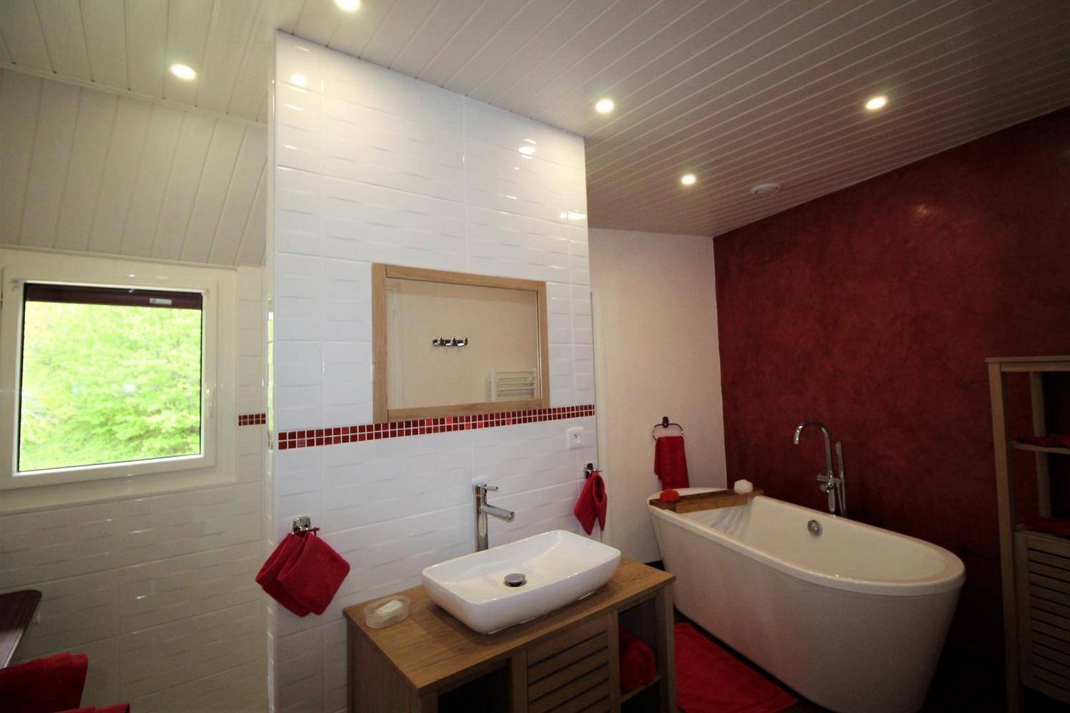En pleine nature, c'est un petit chemin pavé qui mène à la bulle posée au milieu d'un bois de châtaigniers totalement privé et clos. On se rêve Adam ou Eve, et de préférence à deux, pour observer les étoiles et, au loin, les lumières de Saint Leonard la médiévale. A moins que pour s'endormir on ne compte les chevreuils qui vont boire à l'étang . Non loin de la cabane un bain nordique (en option sur réservation) permet l'expérience unique du confort du bain chaud en pleine nature !