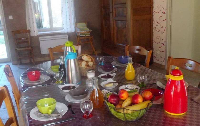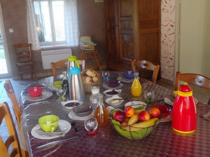manger. il est composé de confitures maison , jus de pomme maison , pain et viennoiseries de la boulangerie du village.