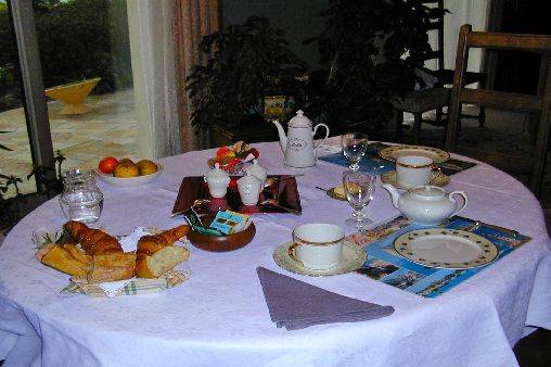petits déjeuners avec produits "maison", dans salle à manger ou terrasse face à la mer.