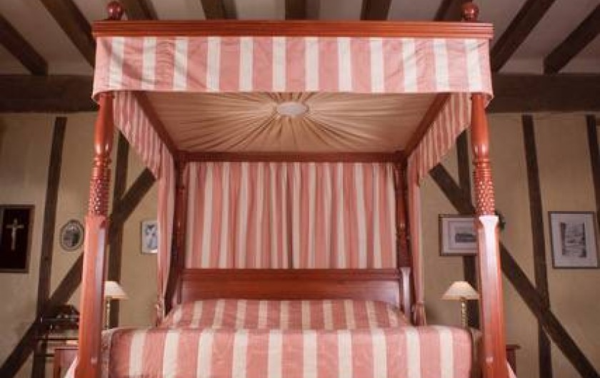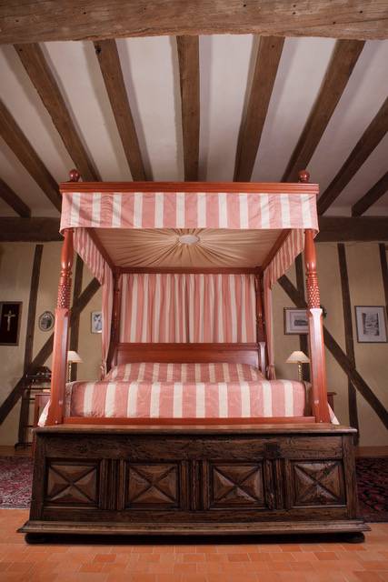 Située au deuxième étage du manoir avec un accès direct par la tour escalier, cette chambre, orientée sud-ouest, donne sur le bois