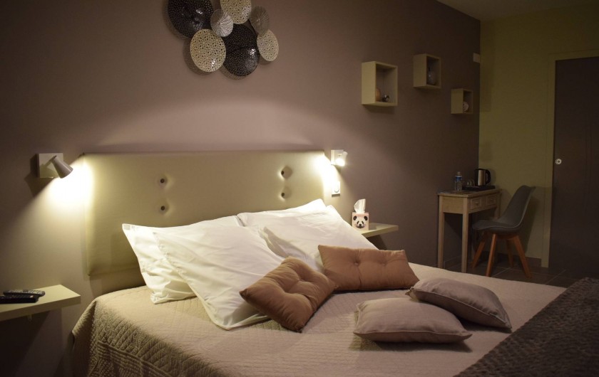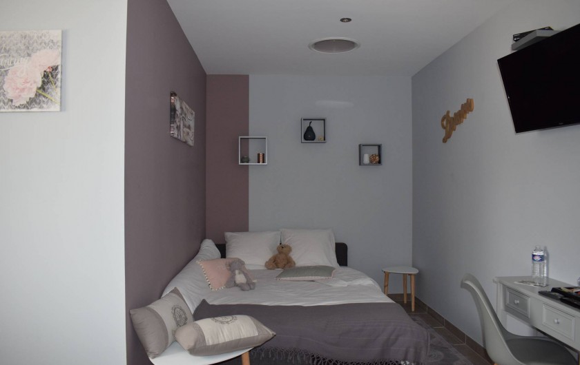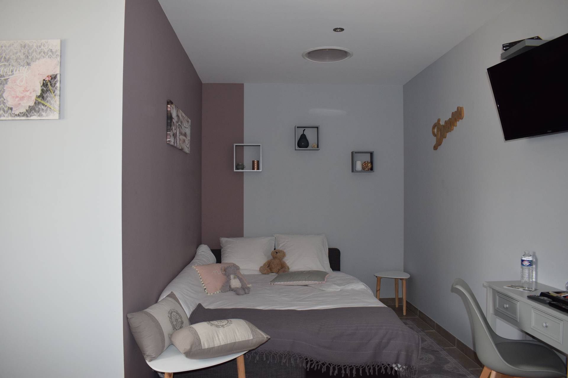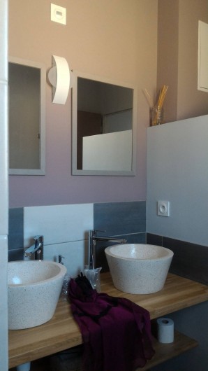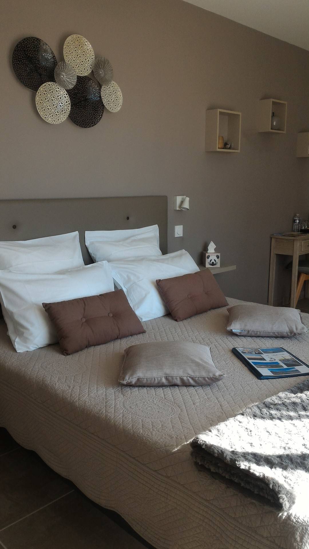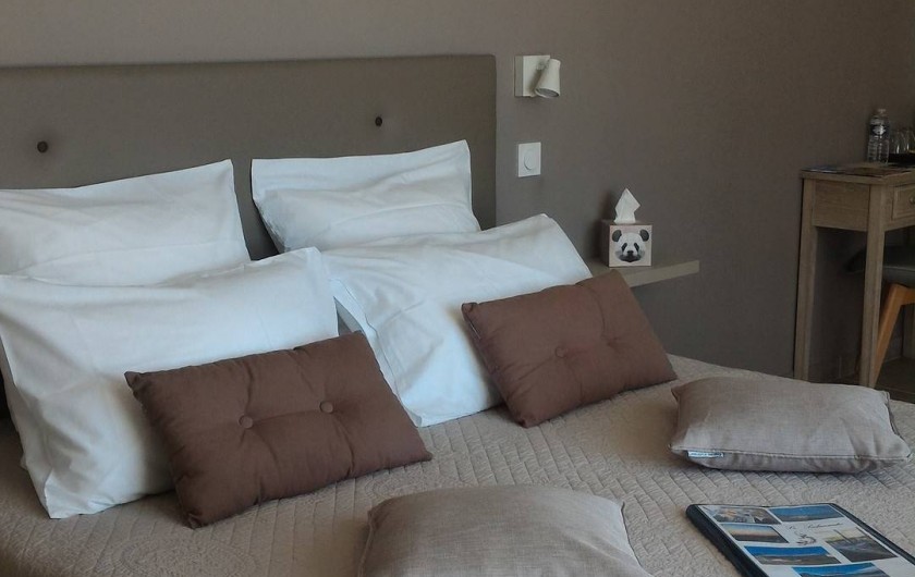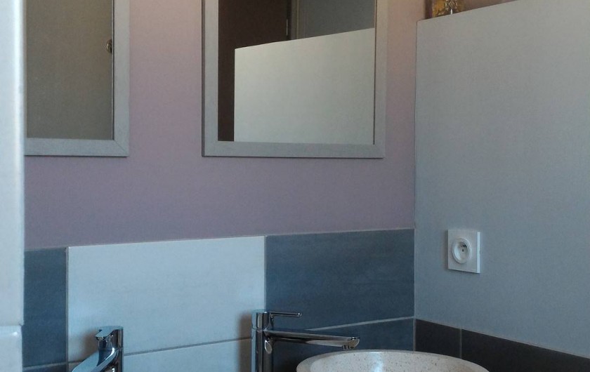 Notre chambre " Brume d'été" possède un salle d'eau accessible au fauteuil roulant (mise à disposition d'un fauteuil roulant spécial douche gratuitement)