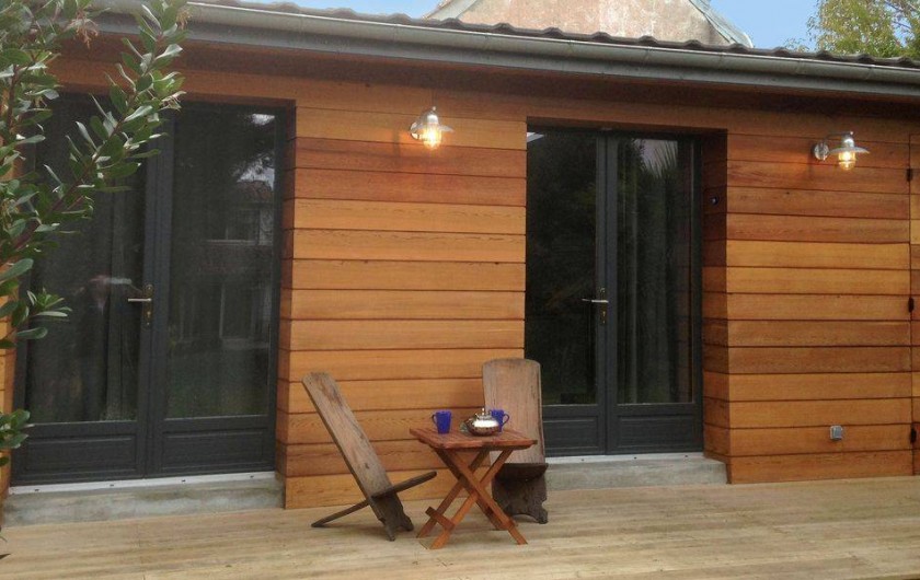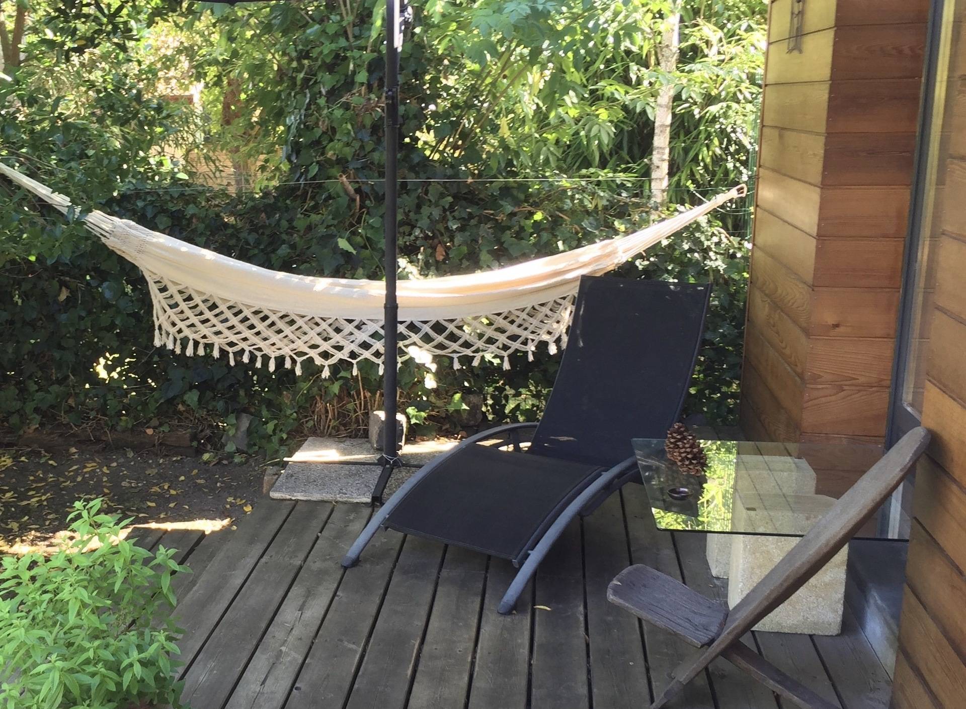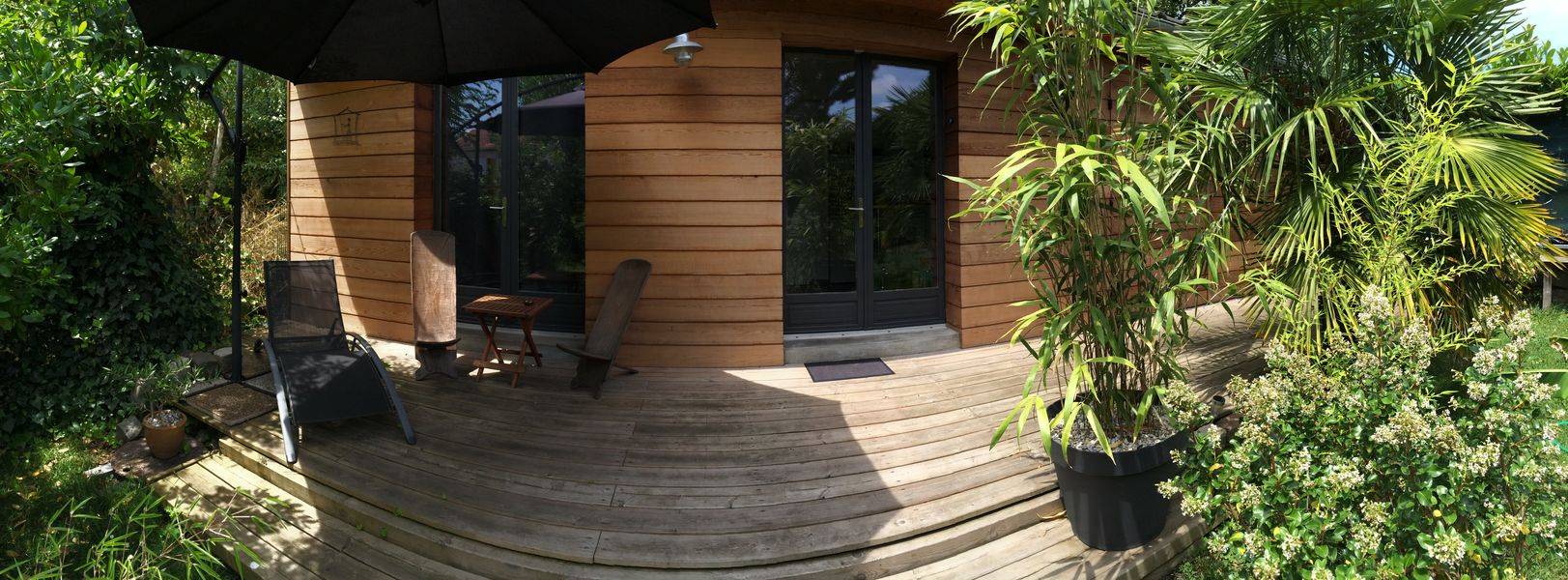 Niché au fond d'un jardin, le studio Clos Bamboo dispose d'un accès privé depuis la rue et est assez éloigné de la
