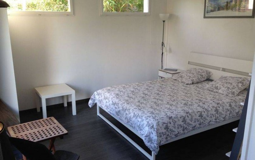 une grande pièce à vivre (27 m²) avec d'un coté la chambre (grand lit double de 160cm)