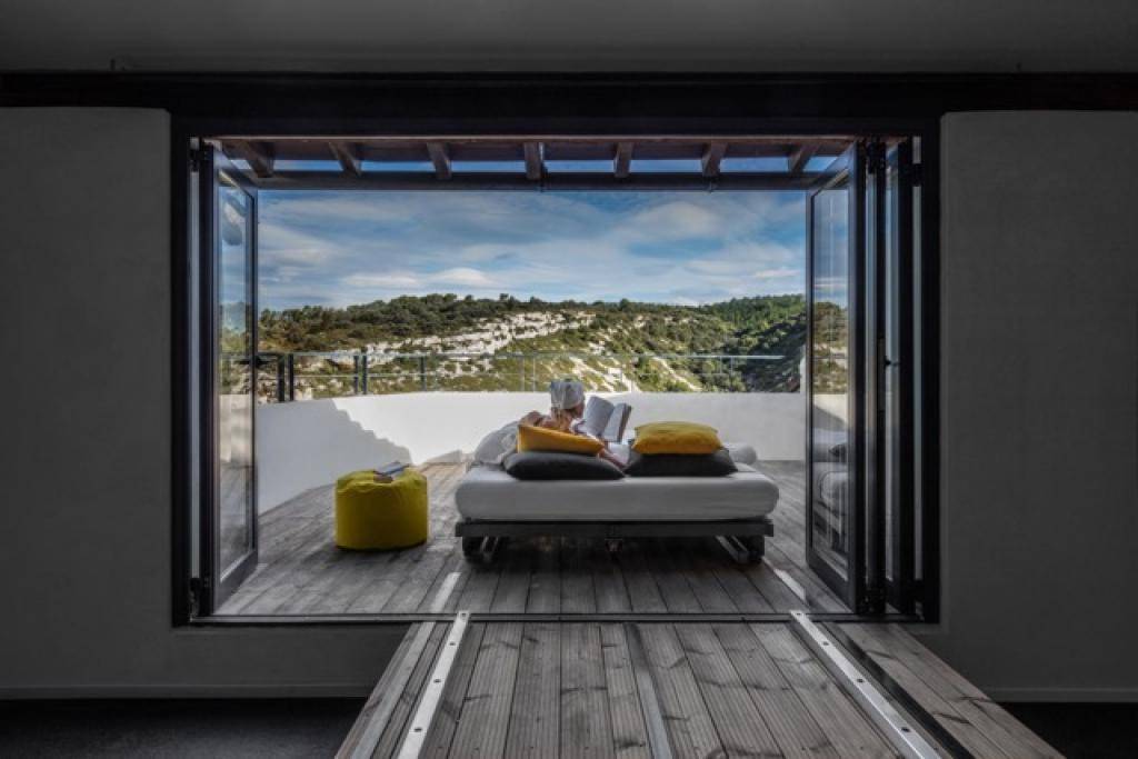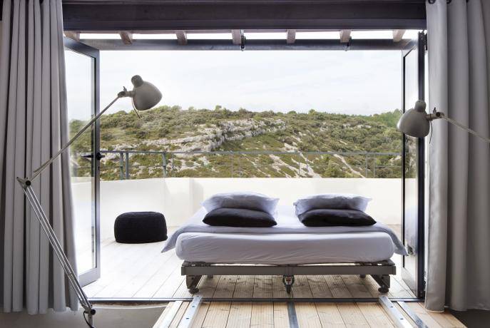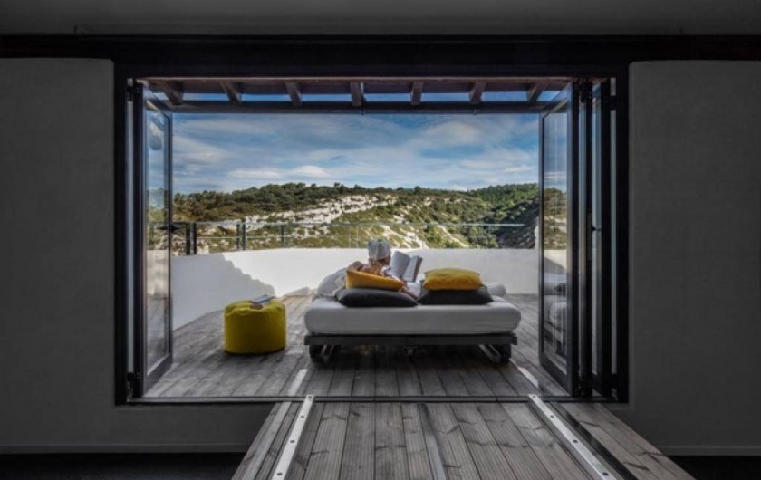 lit double de 160x200cm sur rail (dormir à la belle étoile), terrasse privée