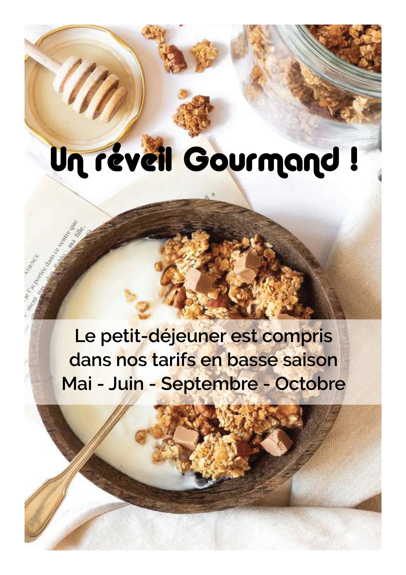 + Petit déjeuner INCLUS dans nos tarifs basse saison (mai-juin-septembre-octobre)