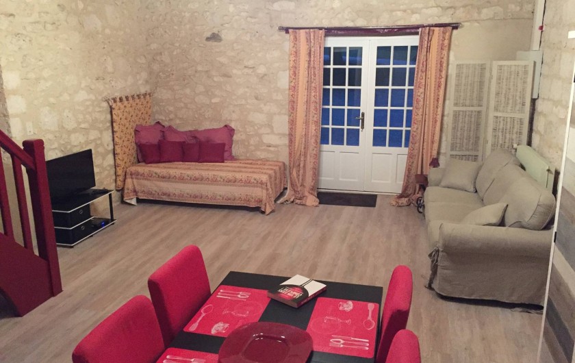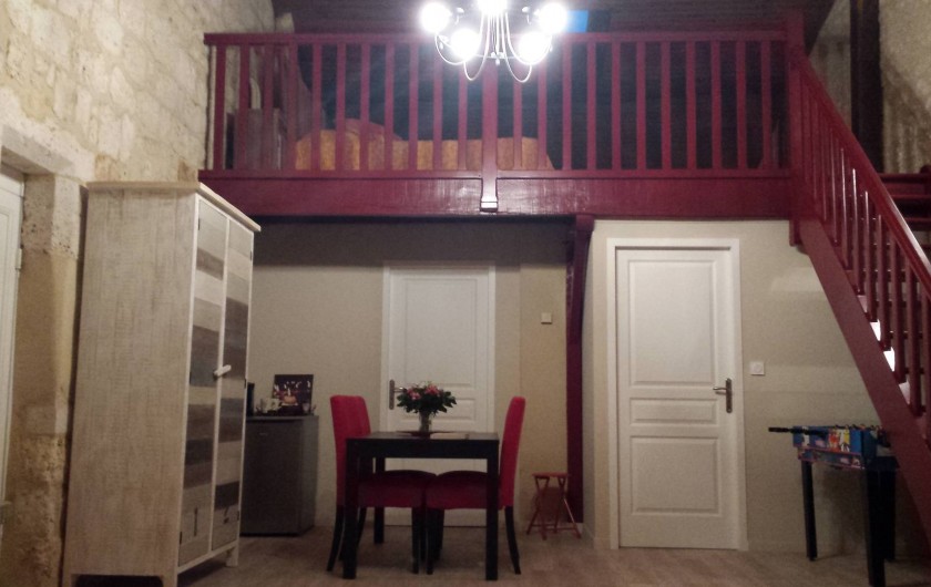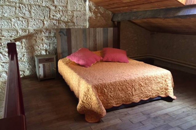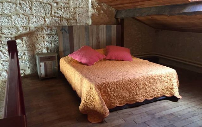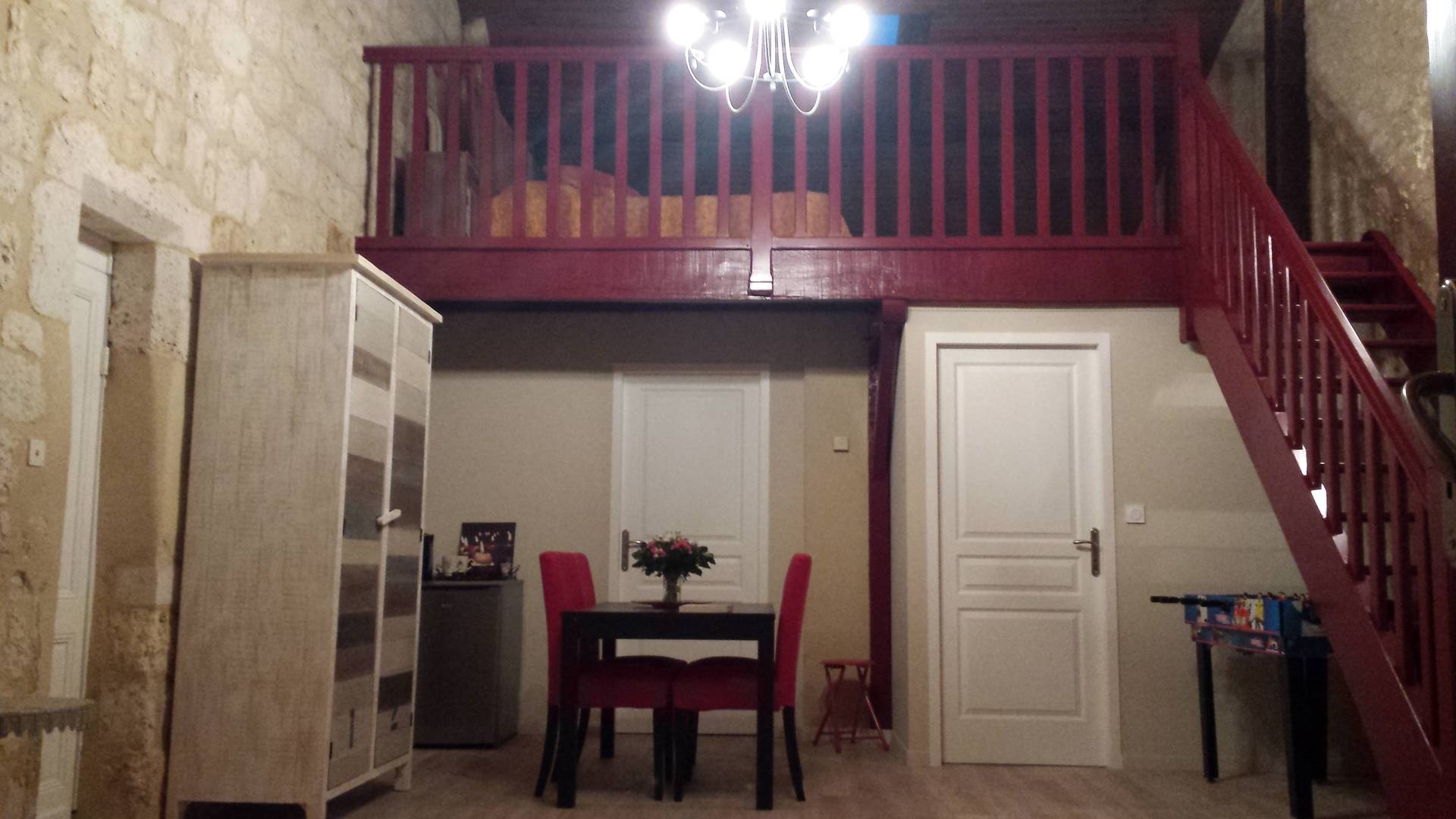 Double chambre sur 2 étages (mezzanine) et salle de bain privée, 50m2 le tout refait à neuf. Au rez-de-chaussée d'une belle maison forte du 14ème siècle. Domaine viticole bio et son espace vert, accès piscine..