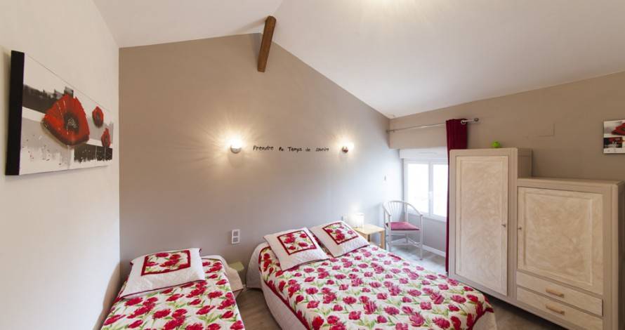 Notre gîte est pour 4 personnes, il fait 50 m2 et est climatisé.
