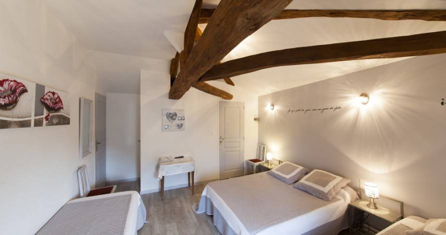 La chambre de 3 personnes à 74 € (petit déjeuner compris)