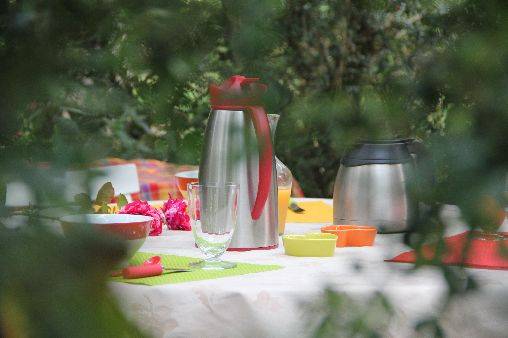 discrétion et ombrage (il fait presque toujours beau ici) et vous pourrez déguster les produits du terroir et les confitures maison accompagnées de thé café ou chocolat, selon votre goût que nous nous efforçons de respecter.