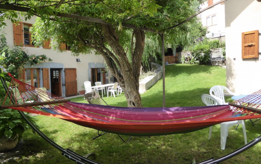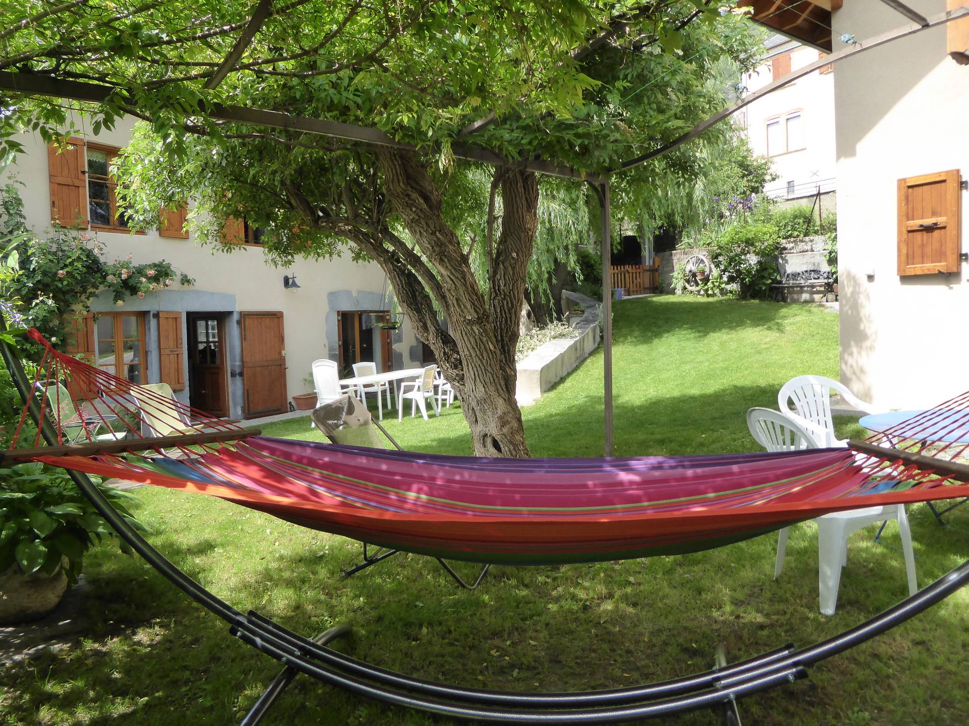 Le calme du jardin clos et fleuri est propice à la détente . Chaises longues et hamac sont à votre disposition .