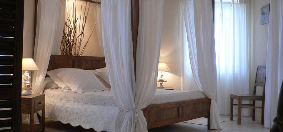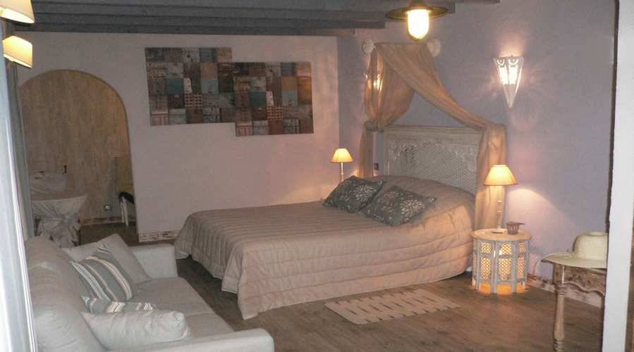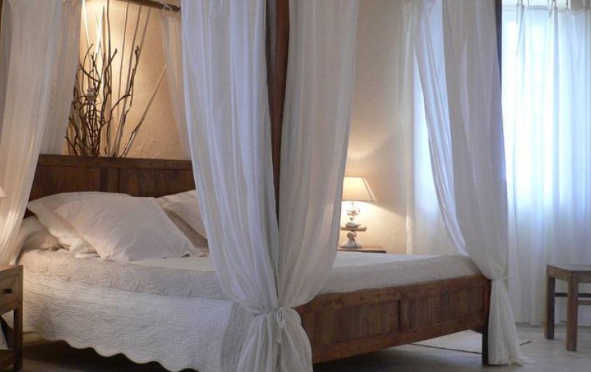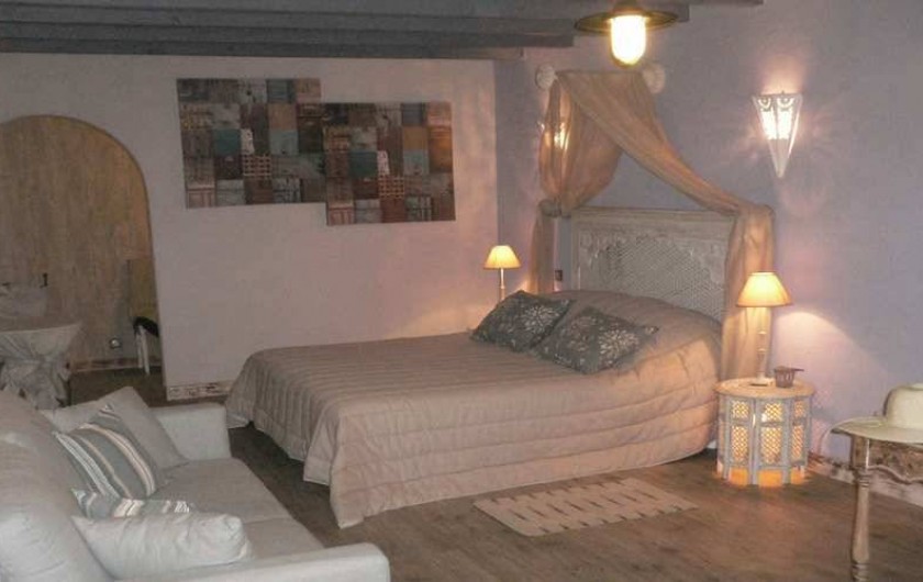 Chambre "Zénitude" située au 2 ième étage, très romantique avec lit à baldaquin+ banquette lit, salle d'eau d'eau avec douche à l'italienne, 2 vasques, wc fermé, clim, TV