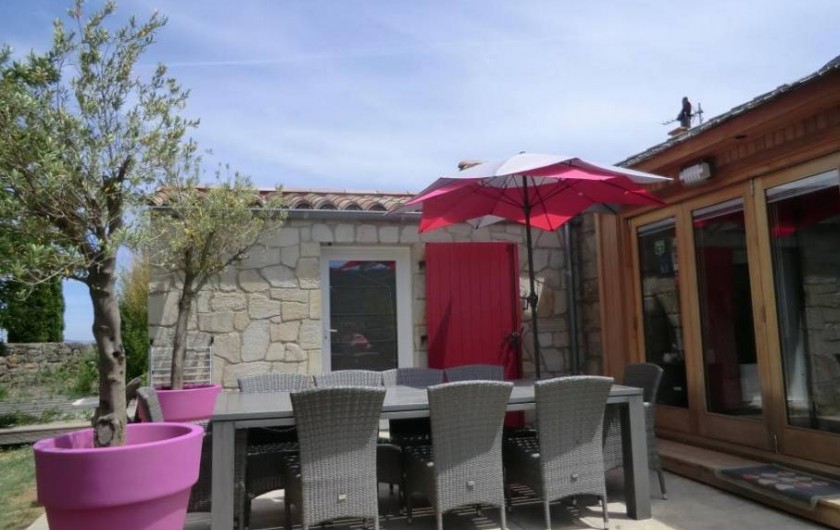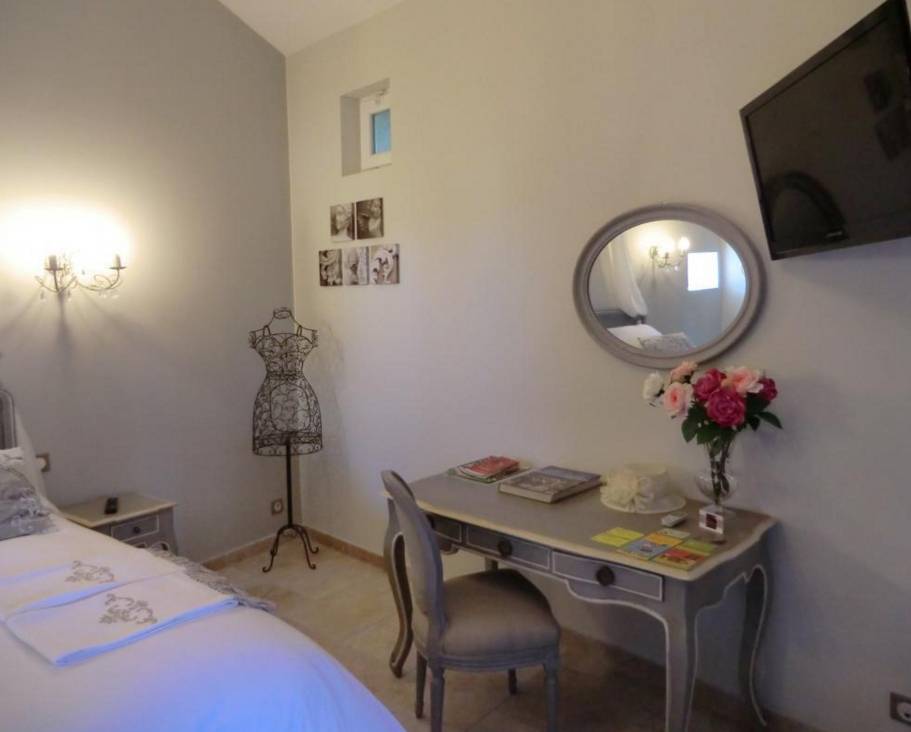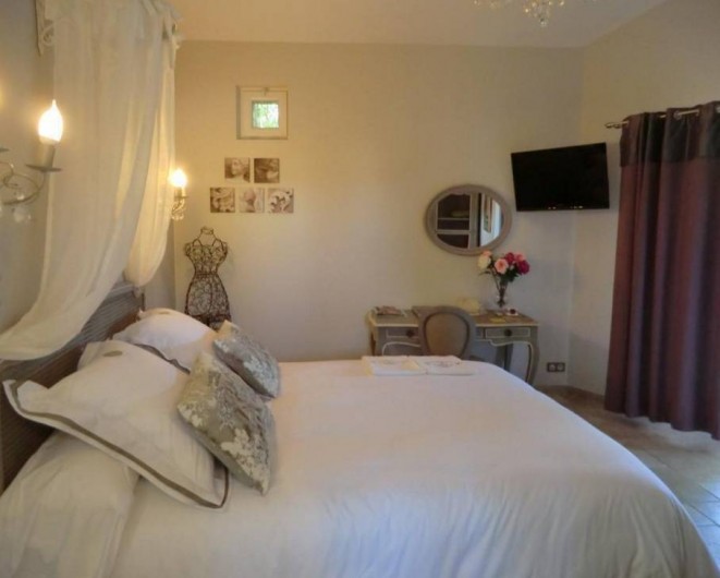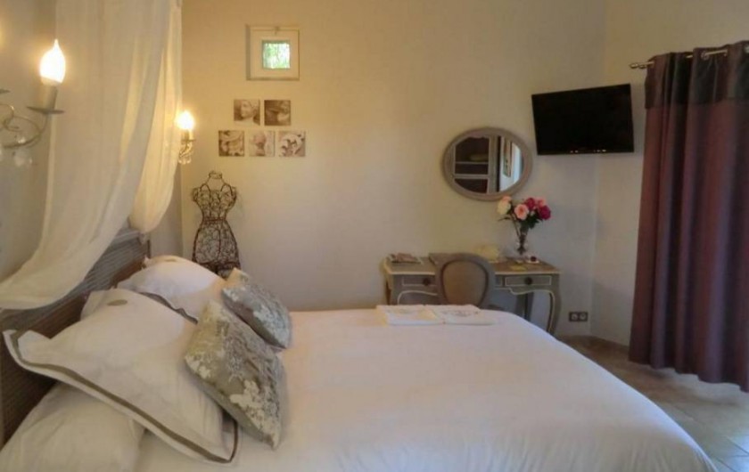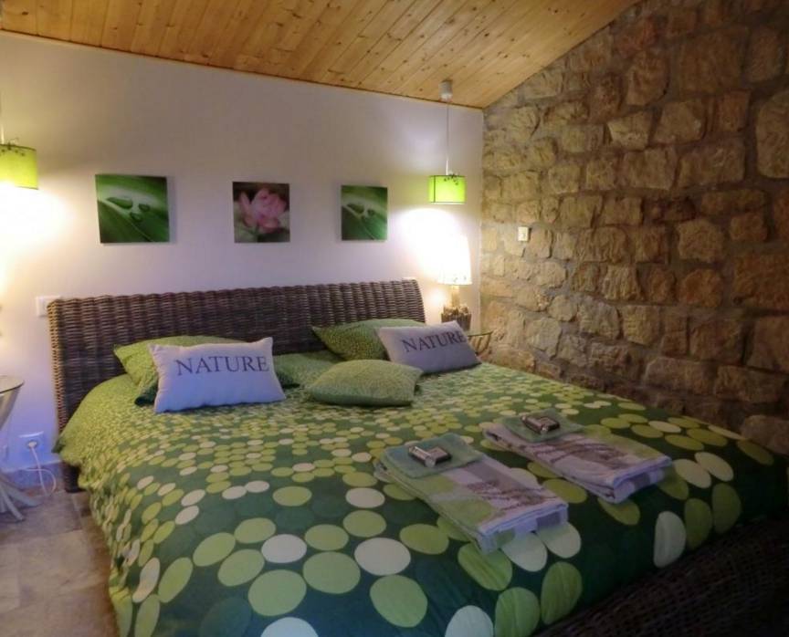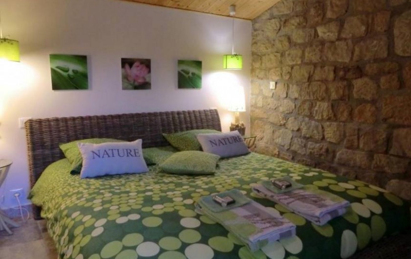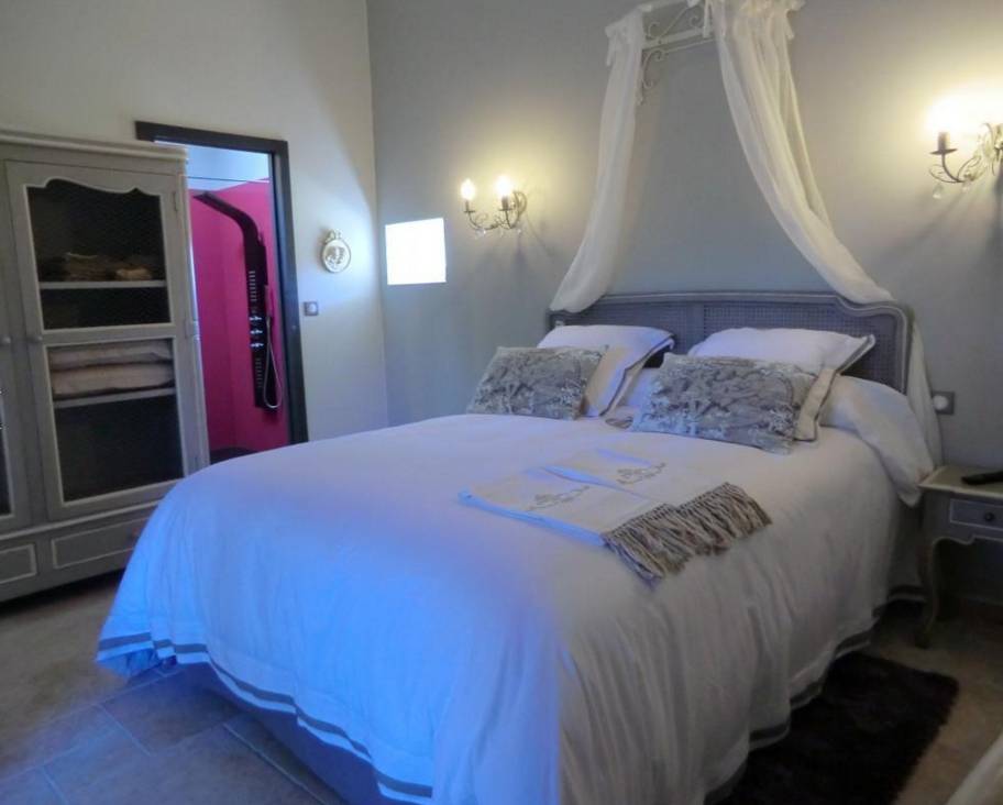 A l'orée du bois, sur le versant d'une colline, nous vous accueillons au Mas de Bouilhac et vous proposons "notre chambre d'hôtes baroque", prévue pour 2 pers et disposant d'une terrasse privée. Belle salle d'eau avec douche italienne, Tv écran plat, clim, literie 160 de très grand confort. Chambre raffinée et très confortable. Minibar, cafetière nespresso et bouilloire à disposition. "La chambre cocooning", petite chambre donnant sur la terrasse, classée 3 épis du fait de sa superficie, ambiance nature pierre et bois, grand lit 160 de très grand confort, salle … d'eau et wc privés. Table d'hôtes sur réservation. Le soir, vous profiterez de la voie lactée et du ciel étoilé. Petit hameau très calme, horizon dégagé sur 360°. Piscine et spa communs (peignoirs fournis) avec notre gîte 2 pers. Privas, capitale du marron glacé à 20 min. Lire moins Lire la suite