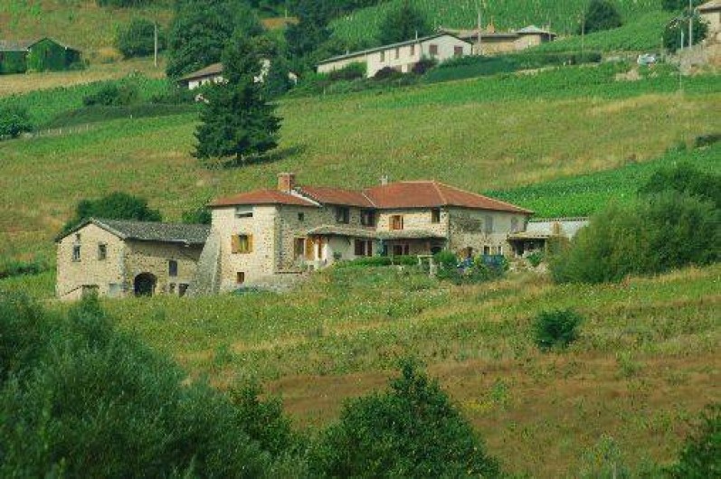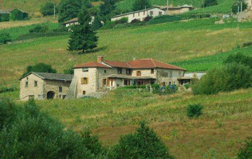 Ancienne ferme entièrement rénovée dans le beaujolais.Située au détour d'un ruisseau entre vignes et bois vous trouverez chez nous un petit coin de paradis. Quatre chambres spacieuses avec salle de bain et WC indépendant, une chambre aménagée handicapé. Particulièrement appréciée pour les fêtes de familles ou entre amis grâce à salle grande salle à manger. Idéalement située à 12 km de l'autoroute, 60 km de Lyon, 30 km de la gare TGV de Macon Loché. Tarifs base 2 personnes petits déjeuners compris 70 € et 22 € par personnes supplémentaires. Chambres familiales 5 personnes à 138 €.
