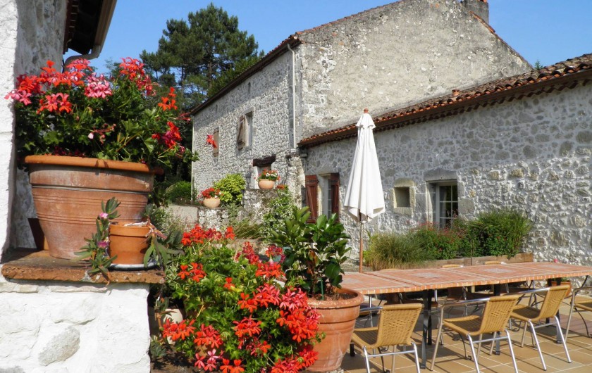 Au domaine, le petit déjeuner, en fonction de la météo, vous sera servi sur la terrasse en plein air ou couverte ou dans la salle à manger.