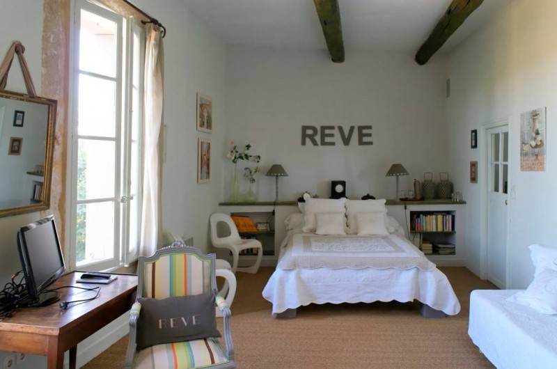 Les petits déjeuners sont servis dans le jardin ou dans la salle à manger aux boiseries du XVII et fauteuils « Starck » autour d’une table en bois moderne Catalane très conviviale.