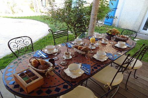 Accueil convivial d’Anne et Louis dans leur charmante maison de village complètement restaurée dans un esprit zen avec des couleurs méditerranéennes ; les petits déjeuners (avec gâteaux et confitures maison) et les repas de table d’hôtes (produits bio et/ou locaux, recettes méditerranéennes) sont servis dans le patio fleuri, ambiance calme.