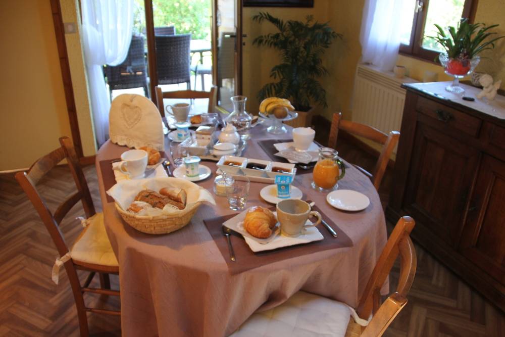 Petit déjeuner servi en terrasse l'été et en salle à manger l'hiver.