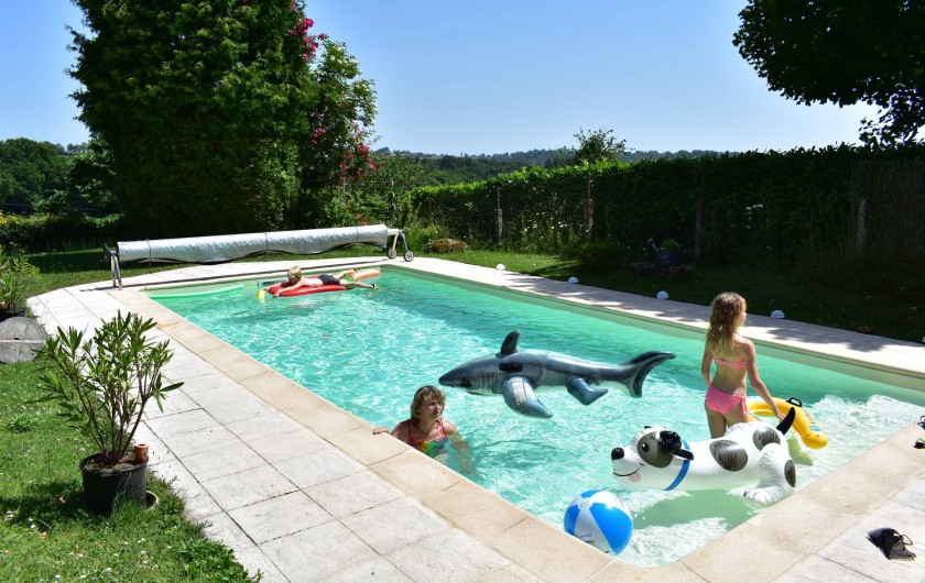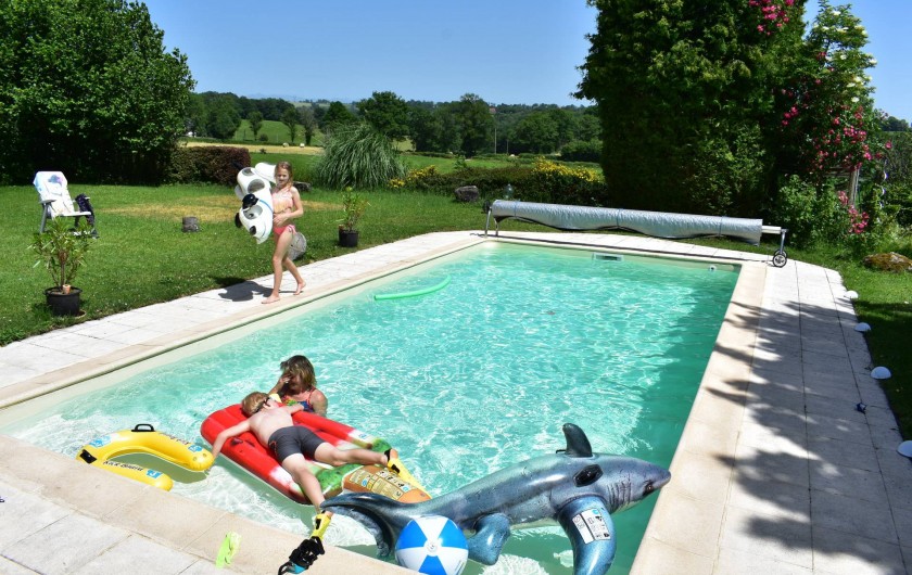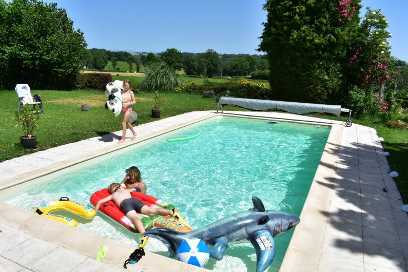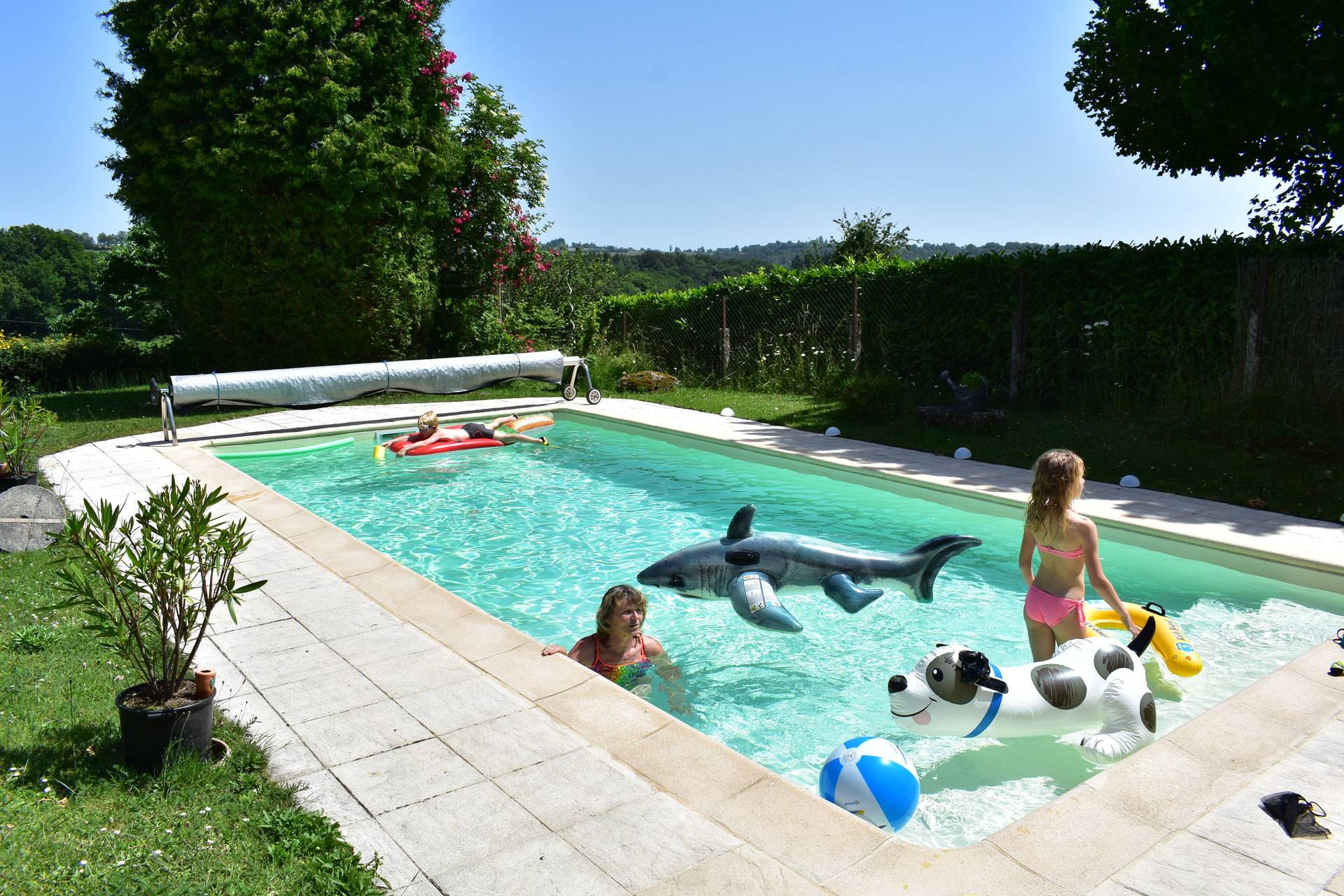 En été, notre piscine ouverte dans le jardin offre le rafraîchissement nécessaire pour les amateurs de la baignade.