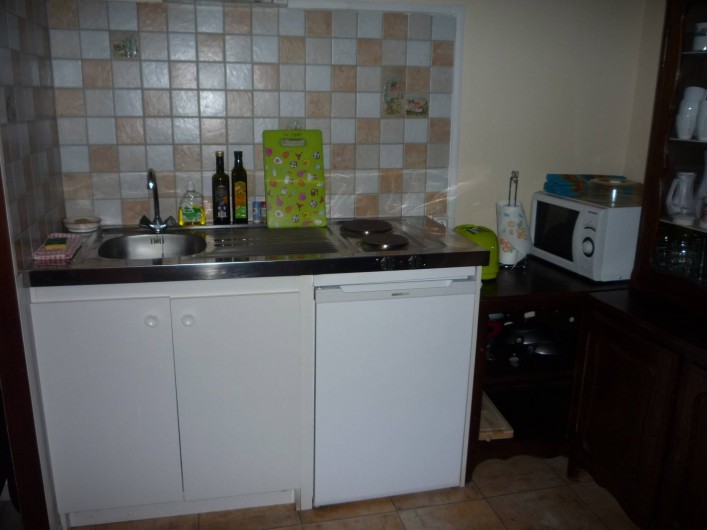 Un petit coin cuisine, ainsi que le BBQ dans le jardin est à disposition des hôtes qui souhaitent préparer un petit repas sur place.