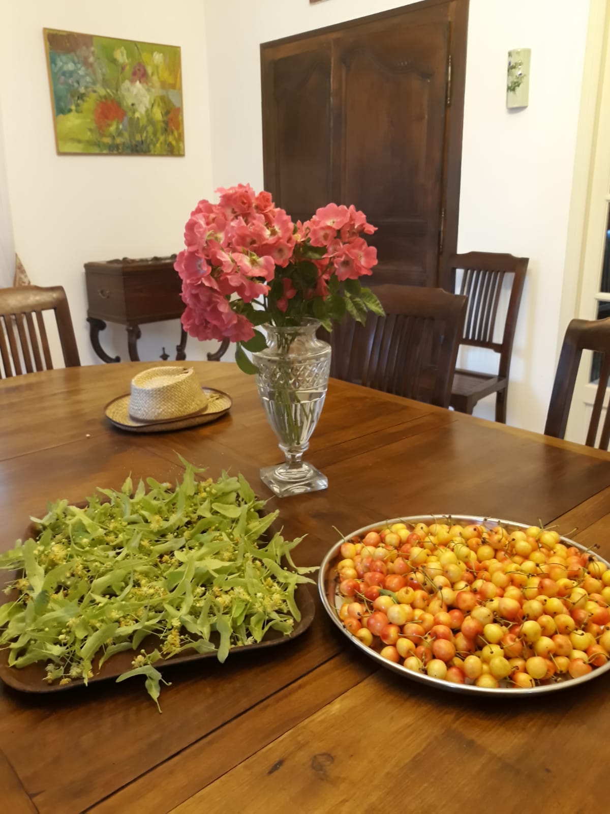 Les jours à "La Tuilerie" sont ponctués par un petit-déjeuner "bio" servi sur la terrasse ou dans la salle à manger familiale, par des paniers pique-nique pour vos excursions champêtres. À l'heure du couchant , on fait une halte sous le kiosque à rosiers pour boire un bel apéritif ou si vous lui demandez à l'avance, Anne vous cuisinera un dîner bio et/ou avec les produits de saison locaux.
