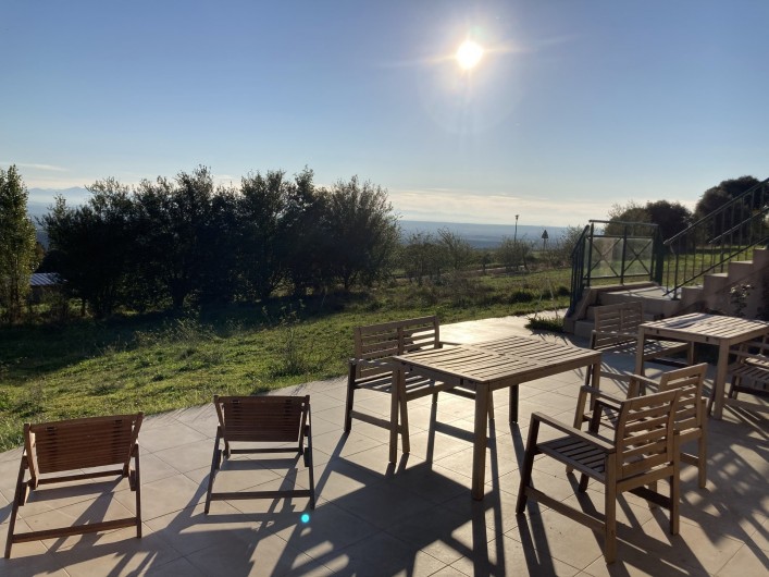 Sur place : aire de jeux arborée, babyfoot, jeu d'échecs géant, ping pong, chevaux, SPA face à la vue, parking fermé sur la propriété.