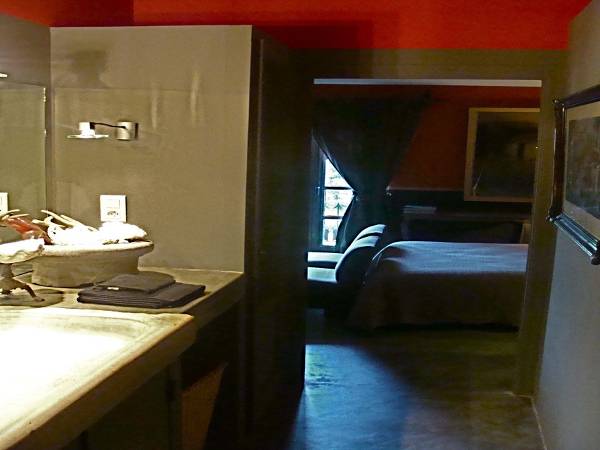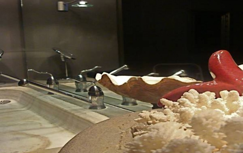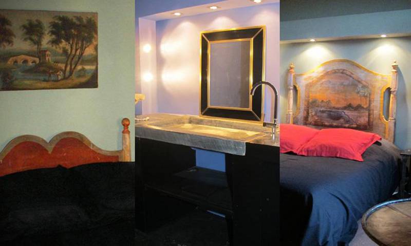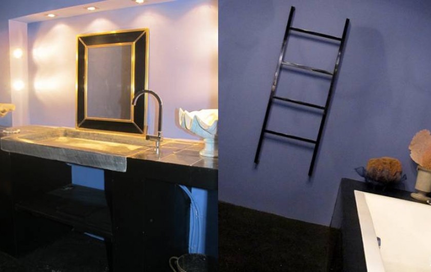 Lit matrimonial (160x190), petit salon et grande salle d'eau avec toilettes.