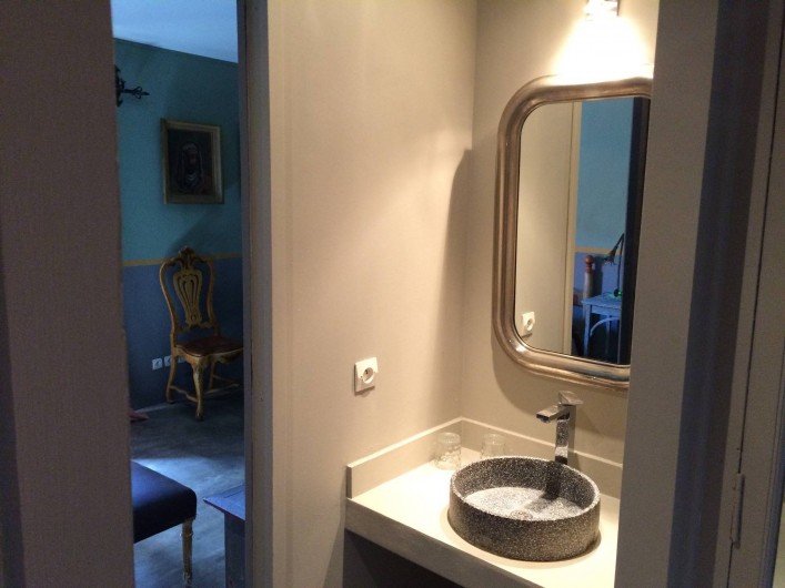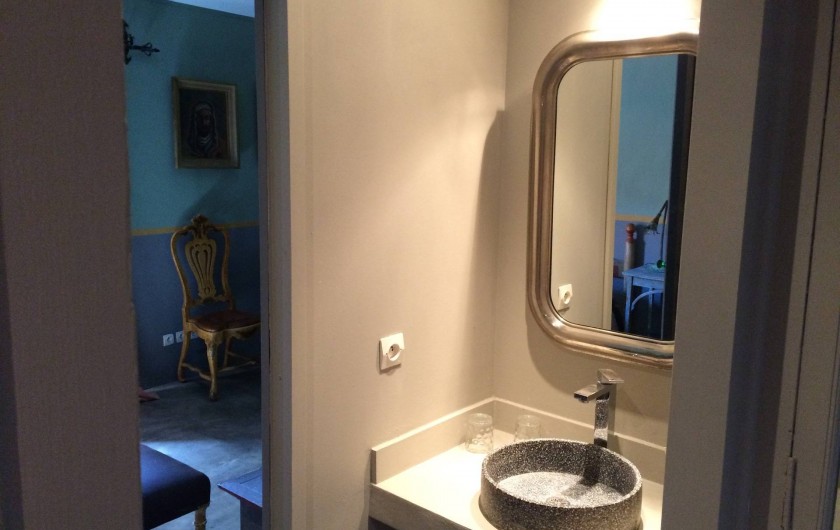 Chambre de 25 m² sur l'arrière de la maison donnant sur une petite rue calme avec salle d'eau et toilettes.