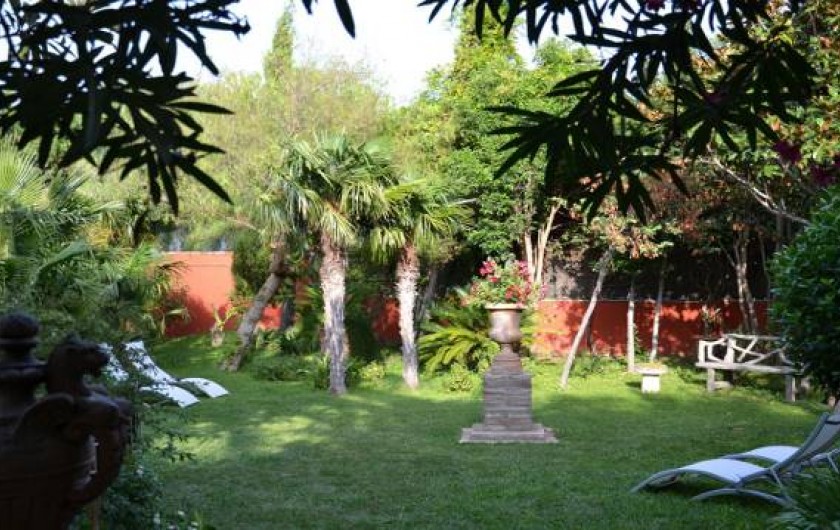 Propriété intime et calme, le farniente coule de source dans le jardin, terrasses, salons au pied des volières ombragées par les orangers et les palmiers.