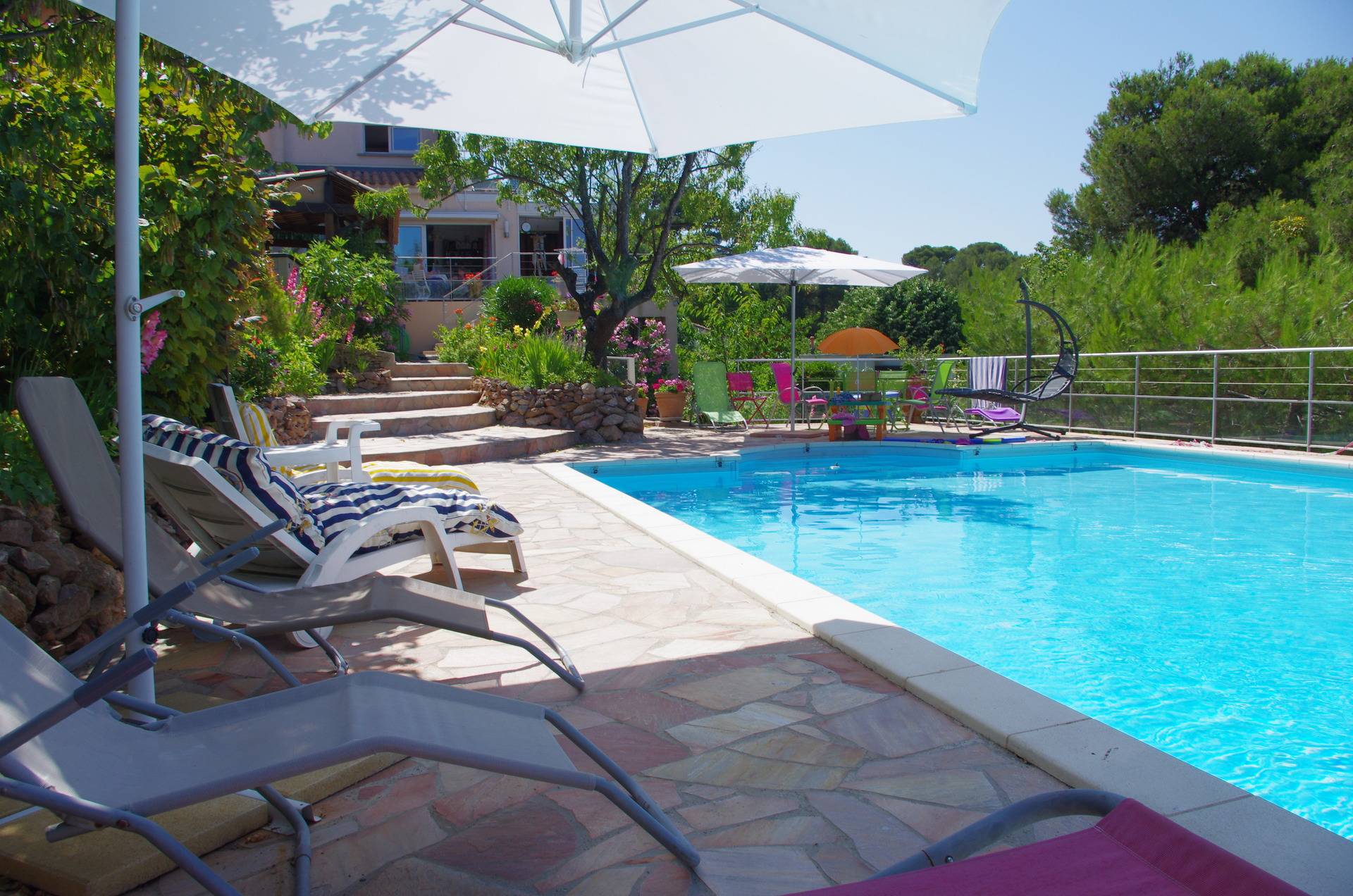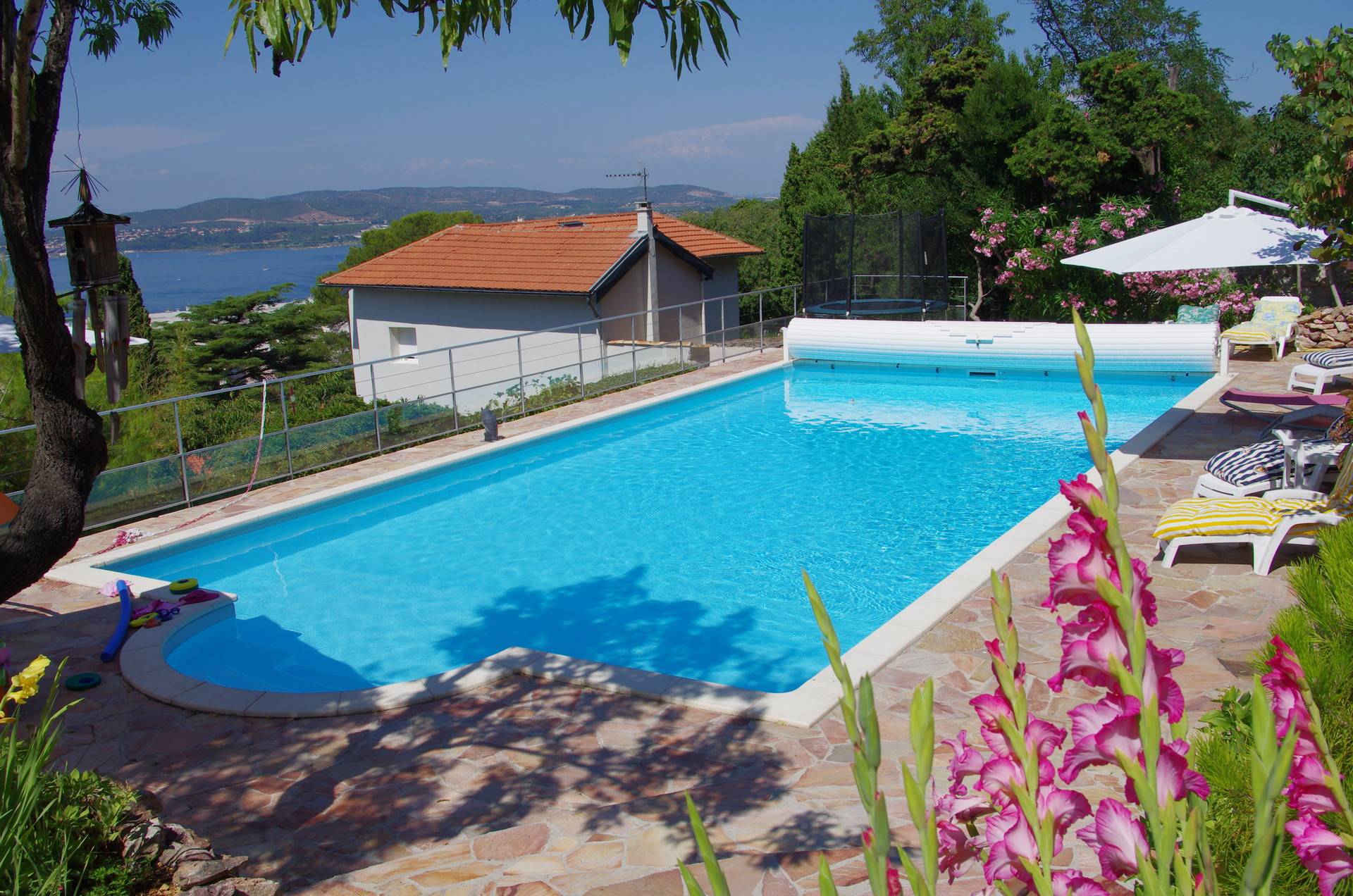Au calme la villa est située sur les pentes du Mont Saint Clair, face à l'Etang de Thau, et donne sur un vaste panorama qui s'étend de la Montagne Noire coté ouest jusqu'à la mer Méditerranée à l'est en passant par les volcans de l'Escandorgue, la retombée sud du plateau du Larzac, les Cévennes, les collines de la Gardiole, le Golfe du Lion ainsi que les stations de Palavas les Flots et la Grande Motte.