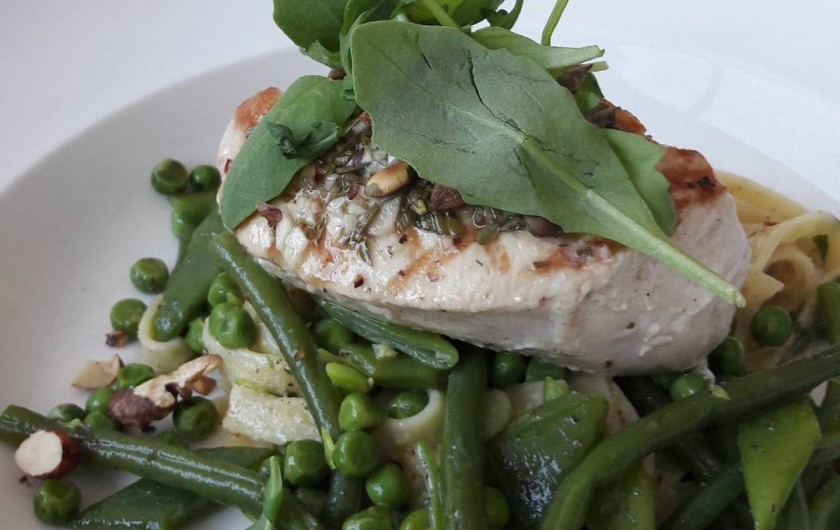 avons la table d’hôte. Vous pouvez prendre place à notre grande table pour se régaler de la cuisine de Henk: des délicieux plats, variés, colorés et parfumés avec des produits de la région.